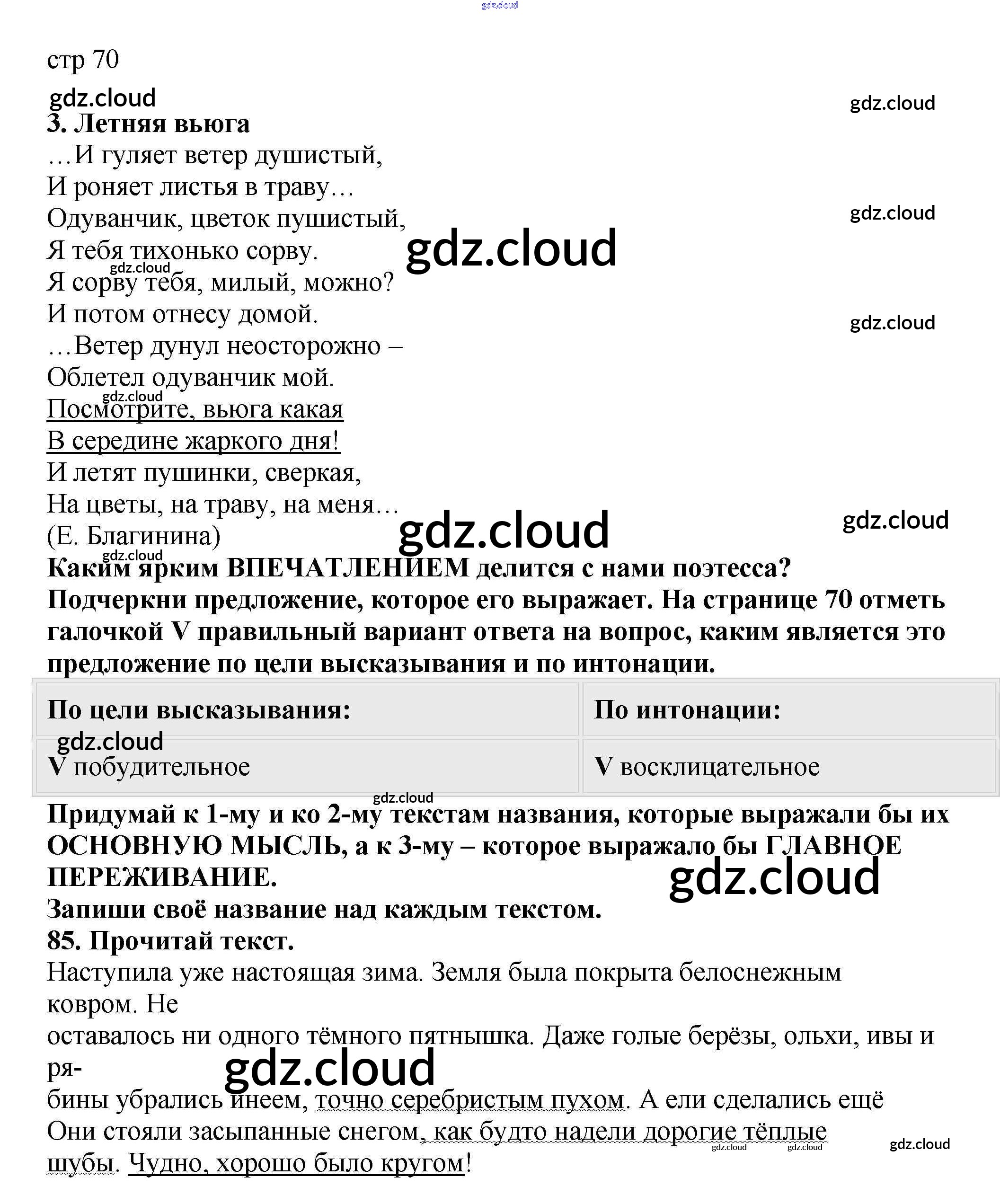 Ответ на задание 70 Тетрадь для самостоятельной работы Русский язык за 2 (второй) класс Байкова, Малаховская, Гольфман 2017 Часть 1, 2