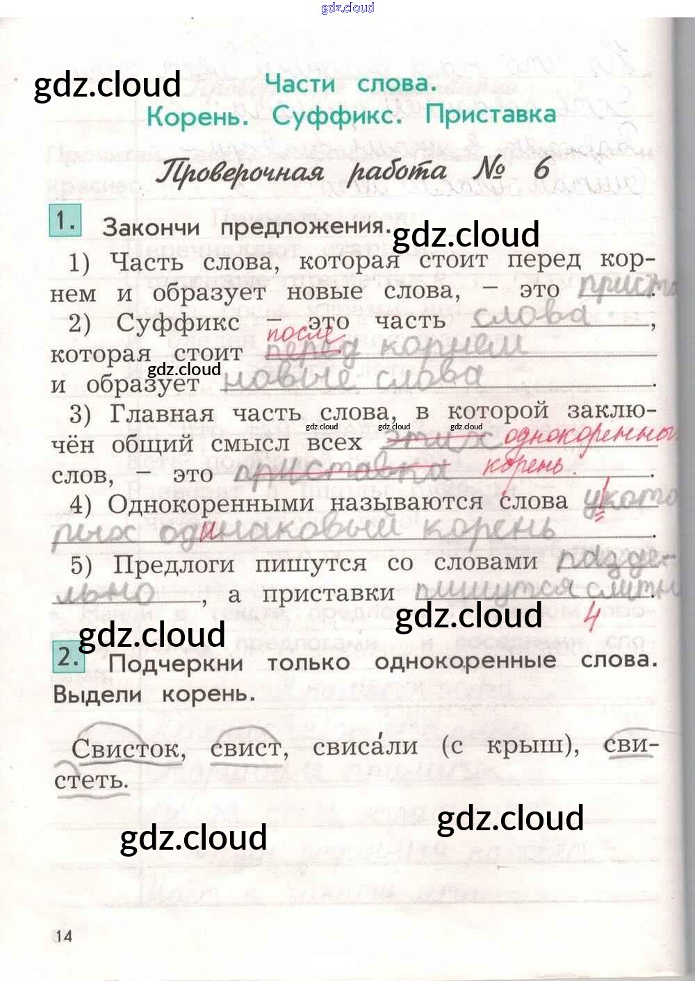 Ответ на задание 14 Проверочные и контрольные работы Русский язык за 2 (второй) класс Бунеева Школа 2100 2017 Часть 1