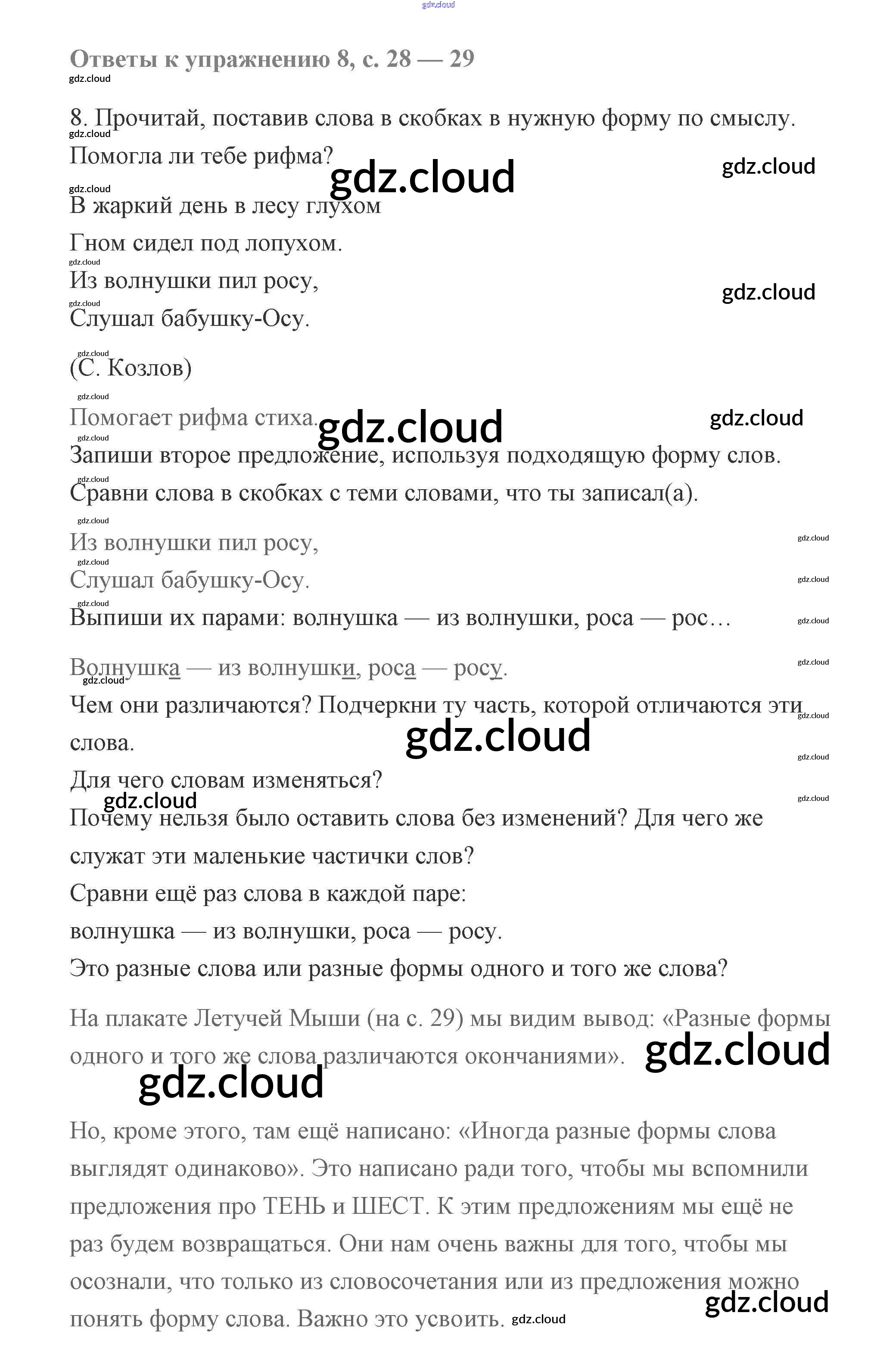 Ответ на задание 8 Учебник Русский язык за 2 (второй) класс Чуракова Перспективная начальная школа 2016 Часть 1, 3