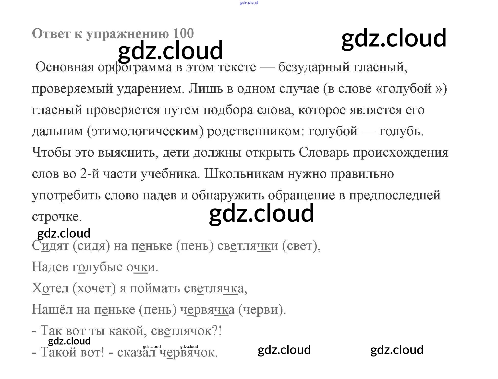 Ответ на задание 100 Учебник Русский язык за 2 (второй) класс Чуракова Перспективная начальная школа 2016 Часть 1, 3