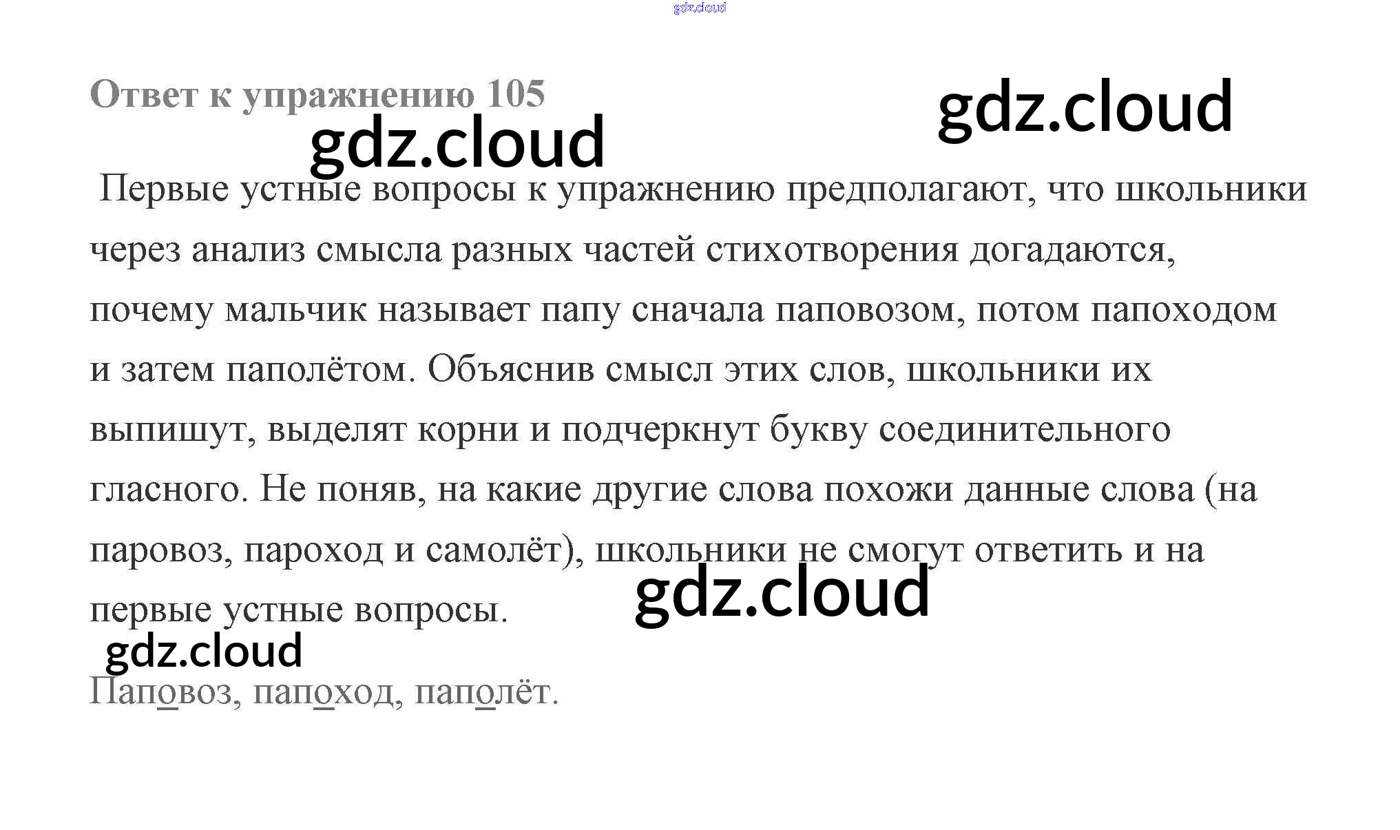 Ответ на задание 105 Учебник Русский язык за 2 (второй) класс Чуракова Перспективная начальная школа 2016 Часть 1, 3