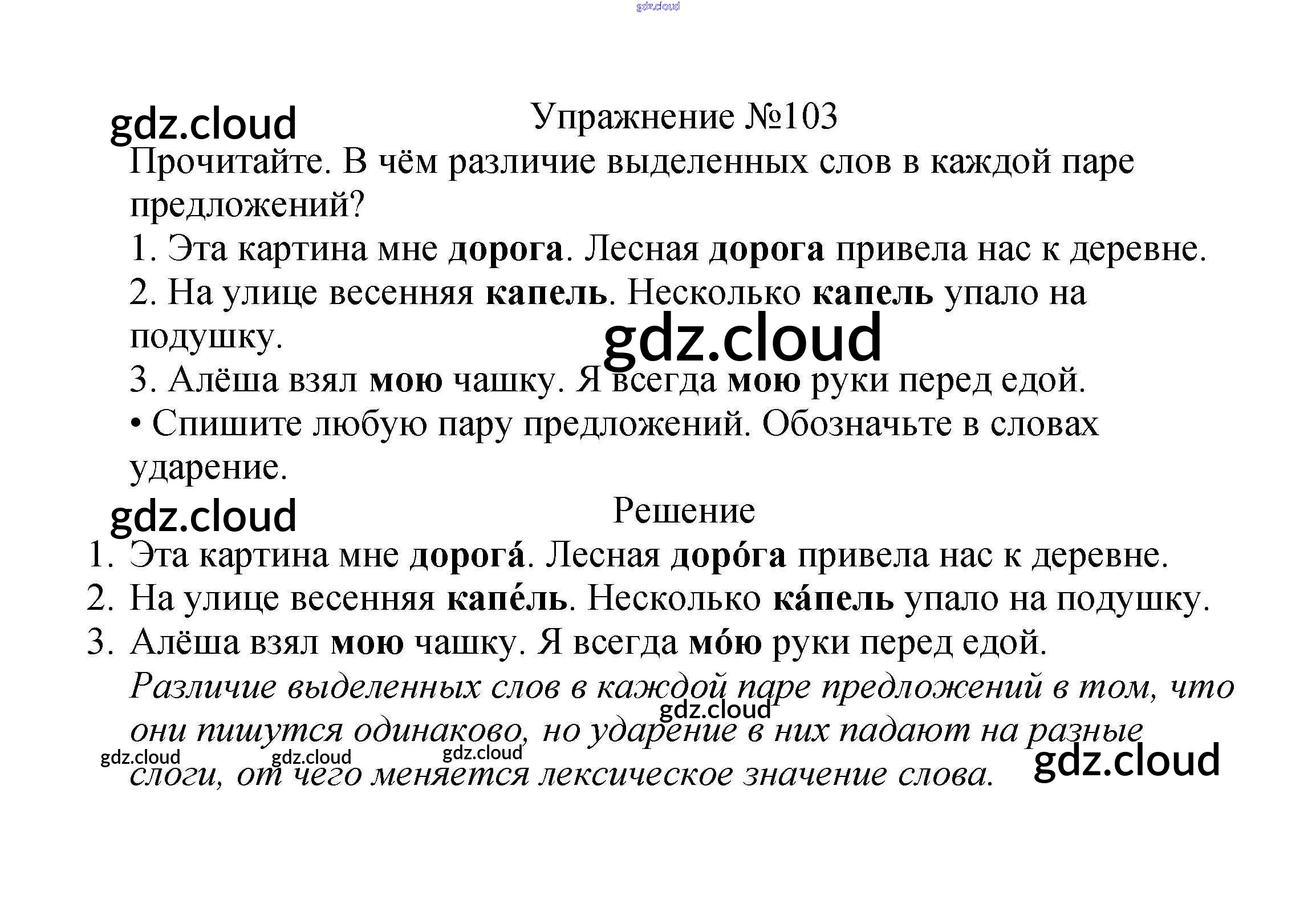 Ответ на задание упр.103 Учебник Русский язык за 2 (второй) класс Канакина, Горецкий Школа России 2013 Часть 1, 2