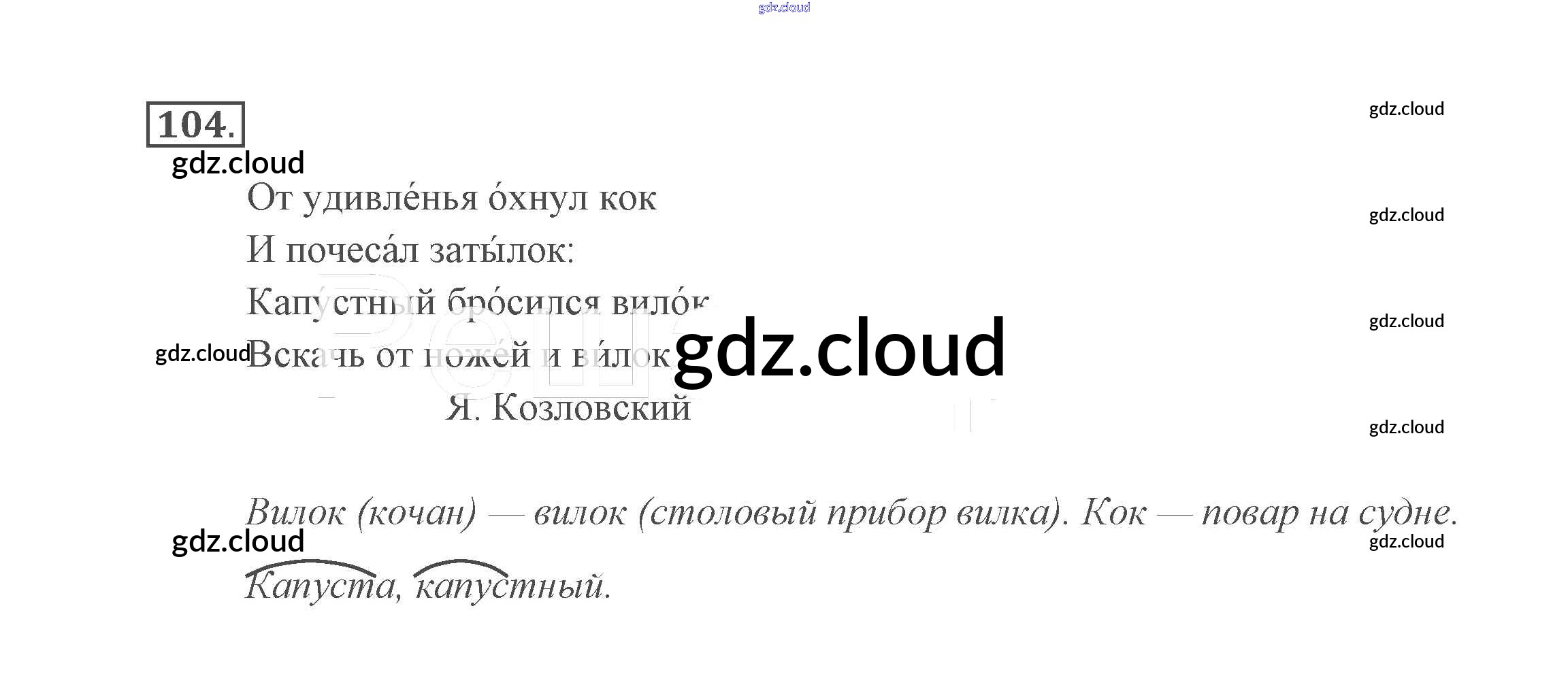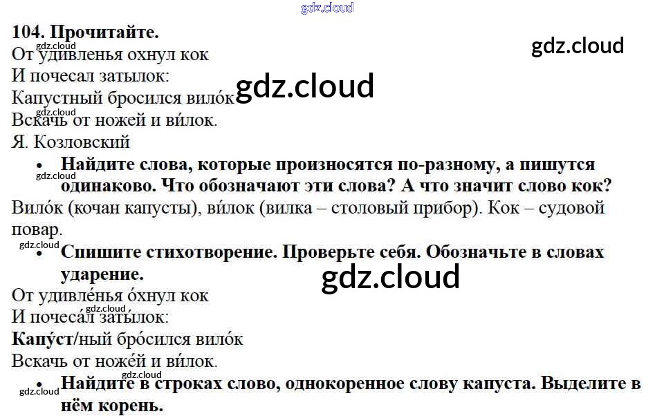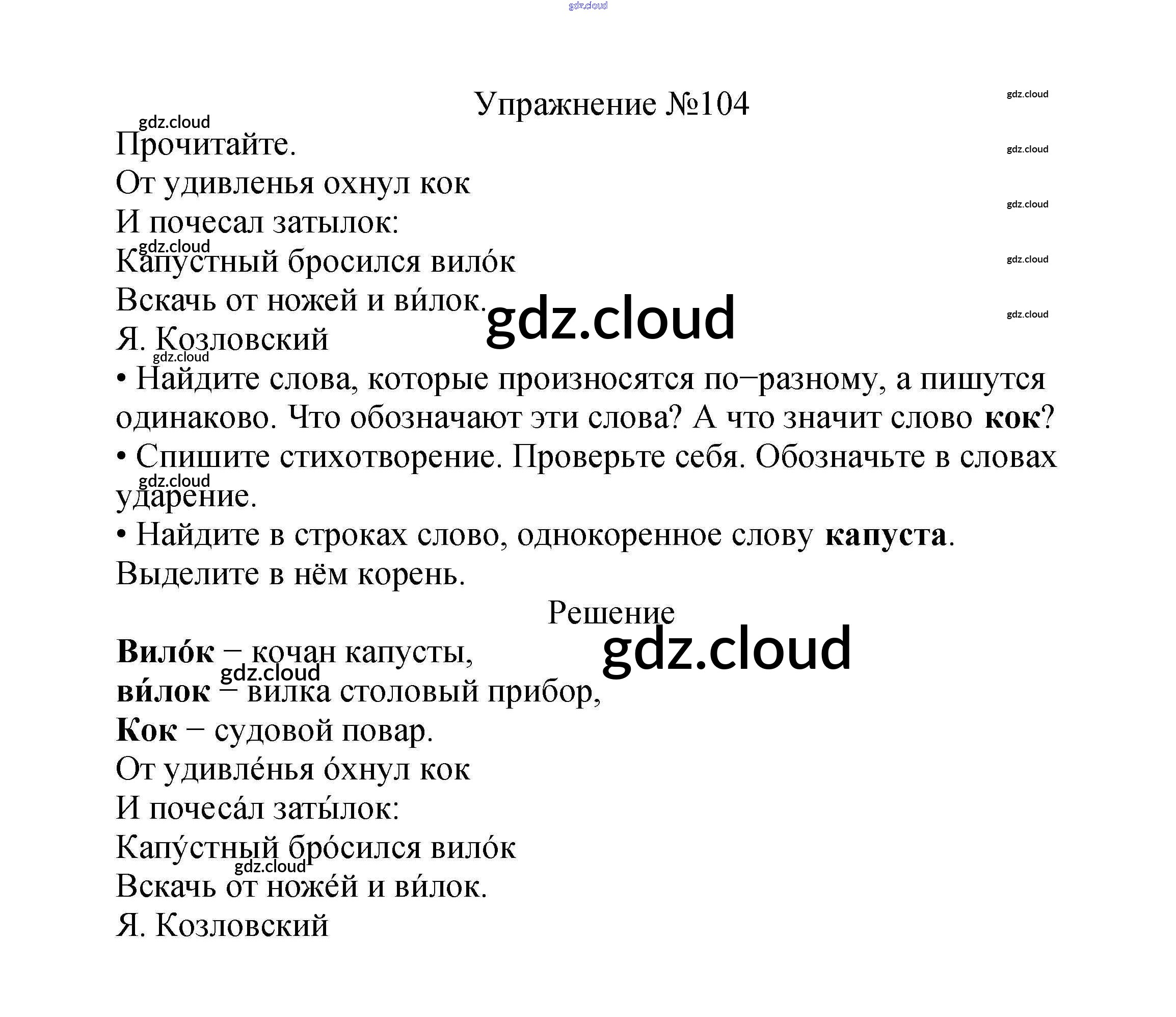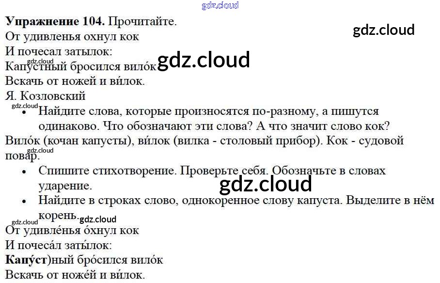 Ответ на задание упр.104 Учебник Русский язык за 2 (второй) класс Канакина, Горецкий Школа России 2013 Часть 1, 2