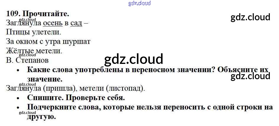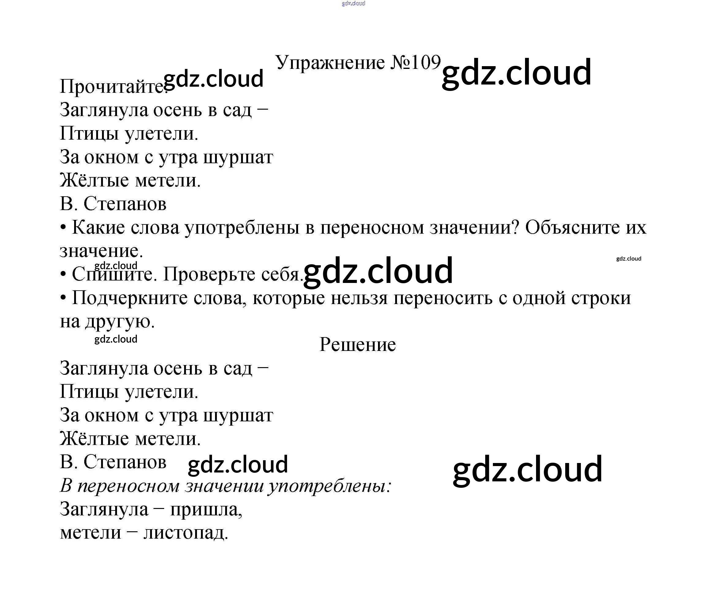 Ответ на задание упр.109 Учебник Русский язык за 2 (второй) класс Канакина, Горецкий Школа России 2013 Часть 1, 2