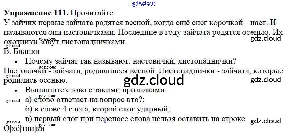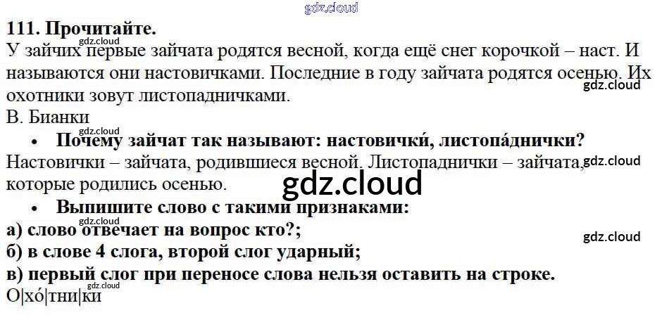 Ответ на задание упр.111 Учебник Русский язык за 2 (второй) класс Канакина, Горецкий Школа России 2013 Часть 1, 2
