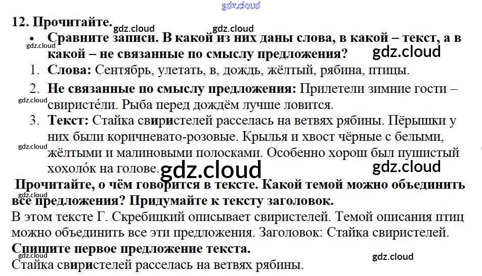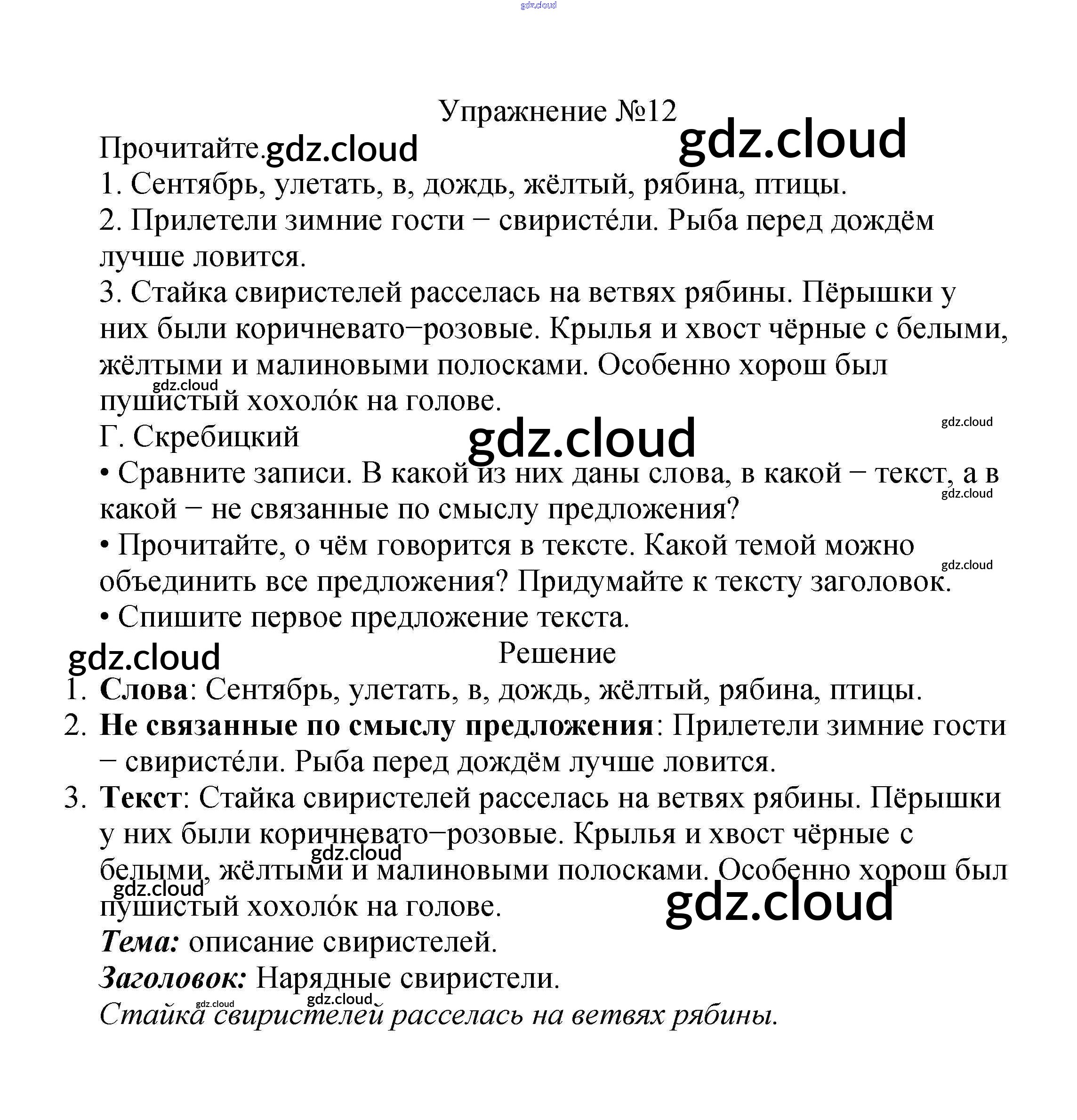 Ответ на задание упр.12 Учебник Русский язык за 2 (второй) класс Канакина, Горецкий Школа России 2013 Часть 1, 2