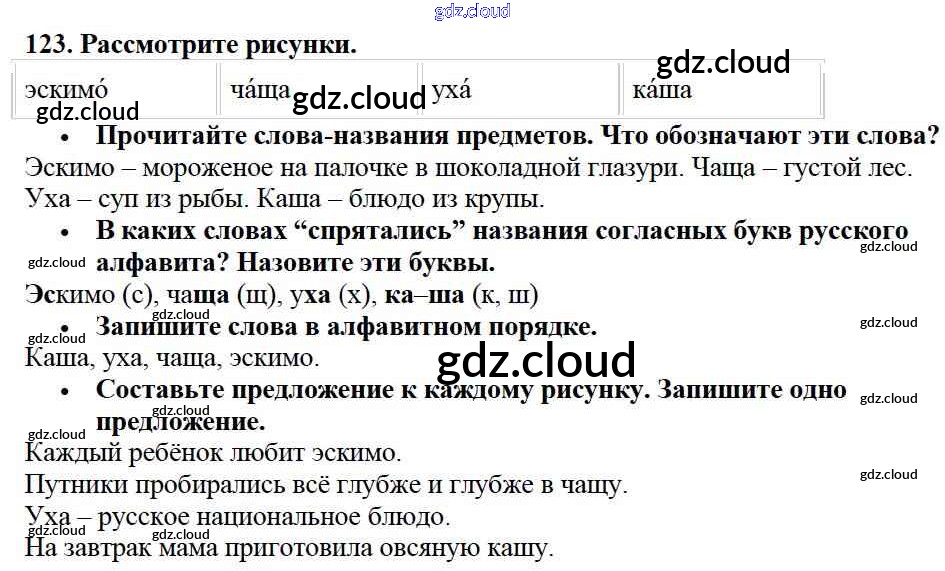 Ответ на задание упр.123 Учебник Русский язык за 2 (второй) класс Канакина, Горецкий Школа России 2013 Часть 1, 2