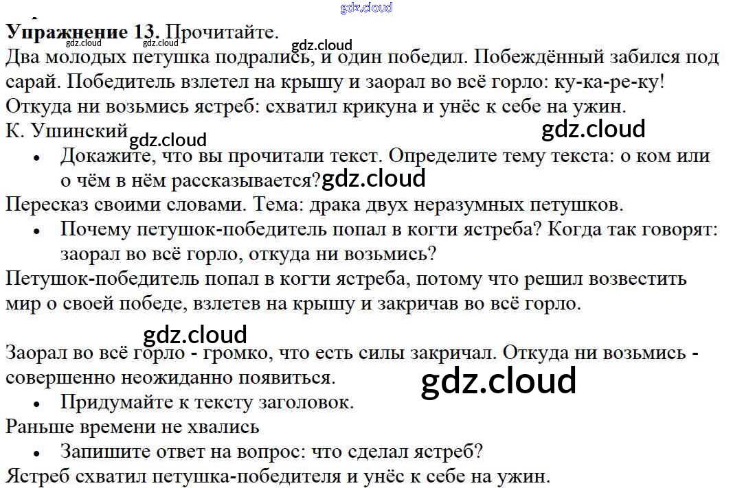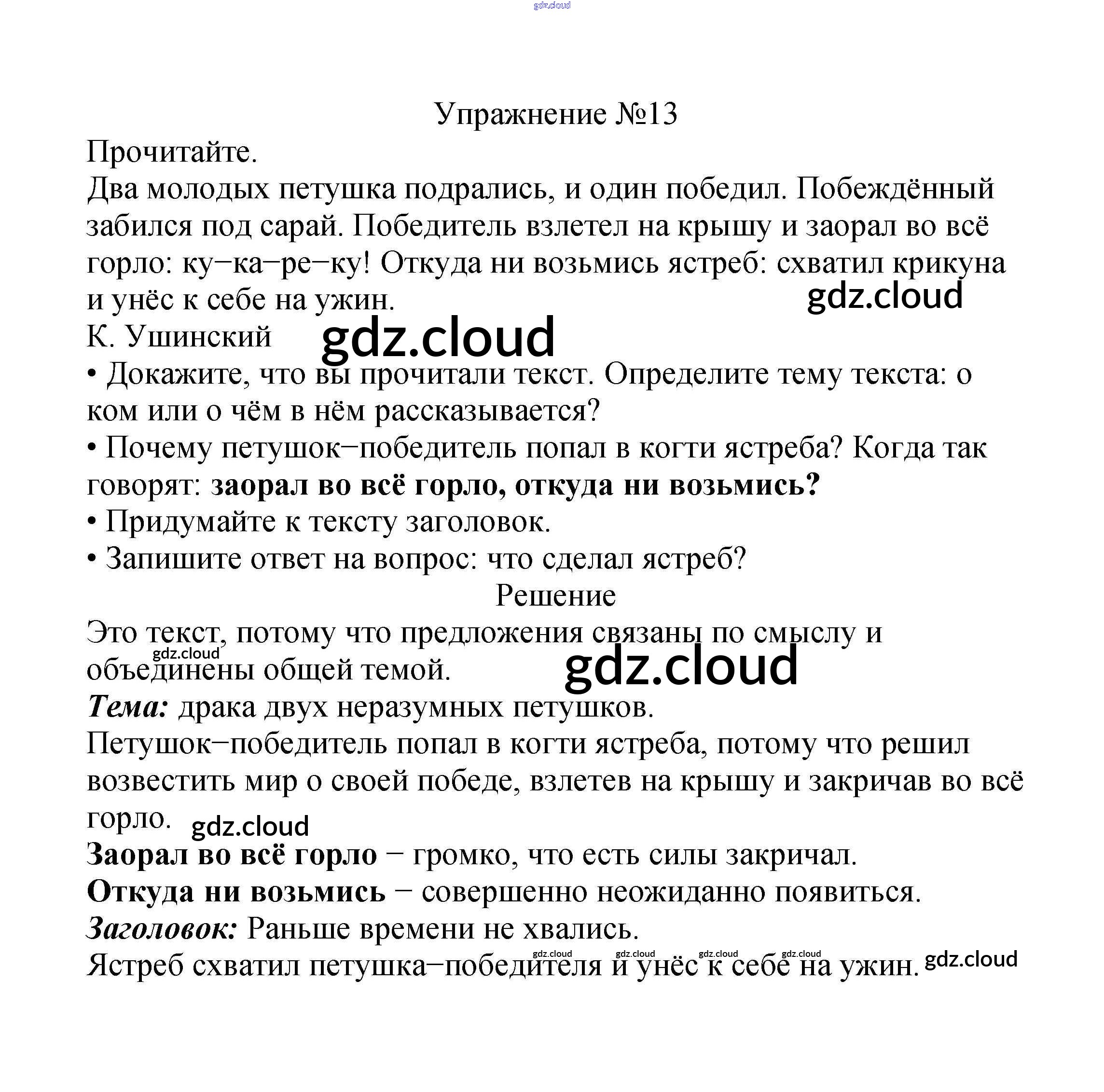 Ответ на задание упр.13 Учебник Русский язык за 2 (второй) класс Канакина, Горецкий Школа России 2013 Часть 1, 2