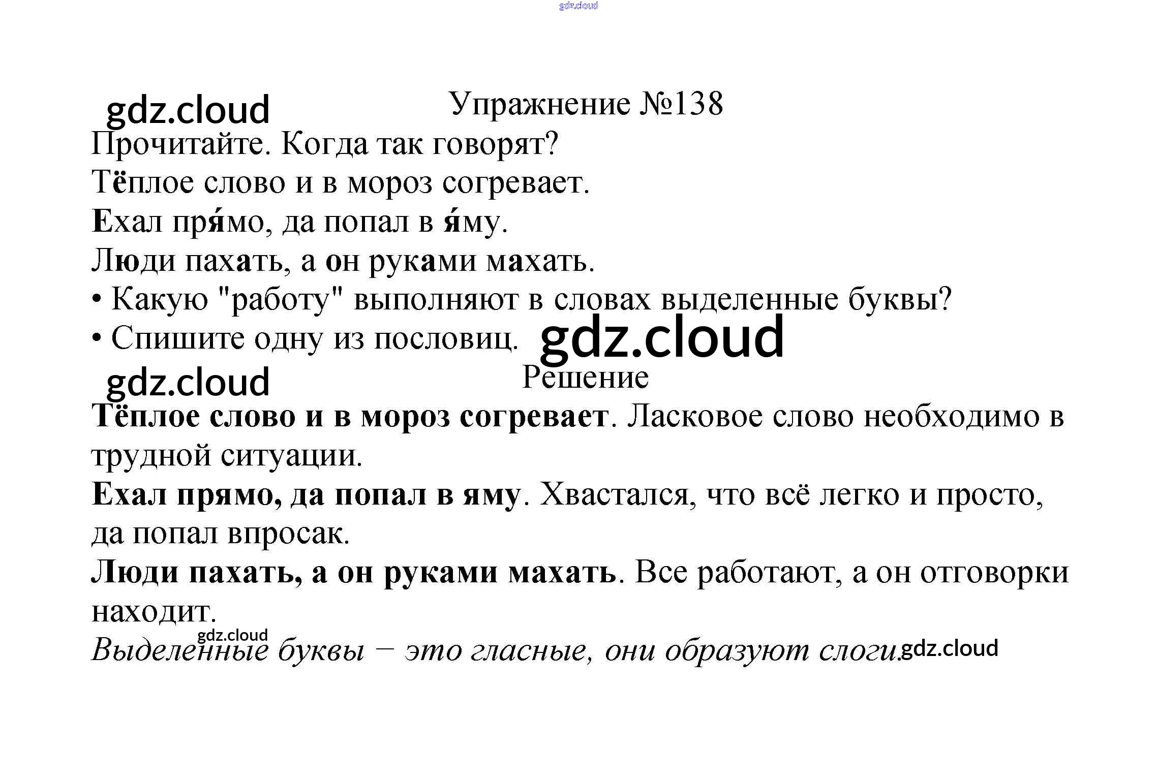 Ответ на задание упр.138 Учебник Русский язык за 2 (второй) класс Канакина, Горецкий Школа России 2013 Часть 1, 2