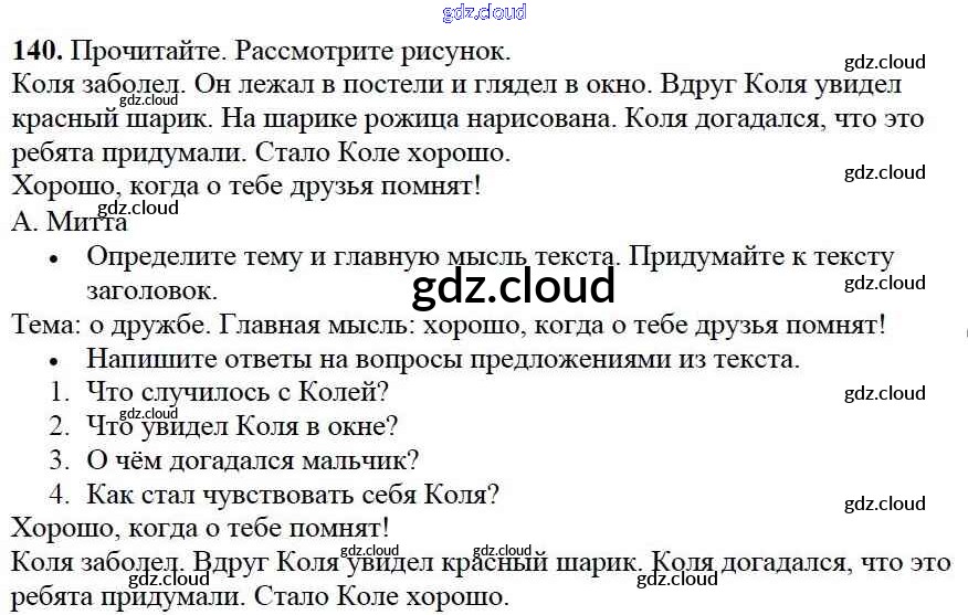 Ответ на задание упр.140 Учебник Русский язык за 2 (второй) класс Канакина, Горецкий Школа России 2013 Часть 1, 2