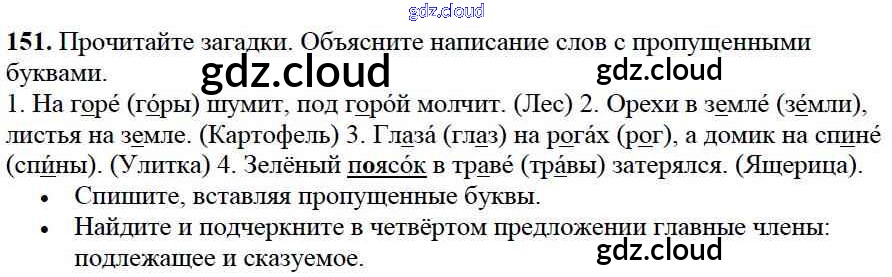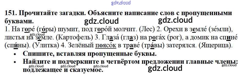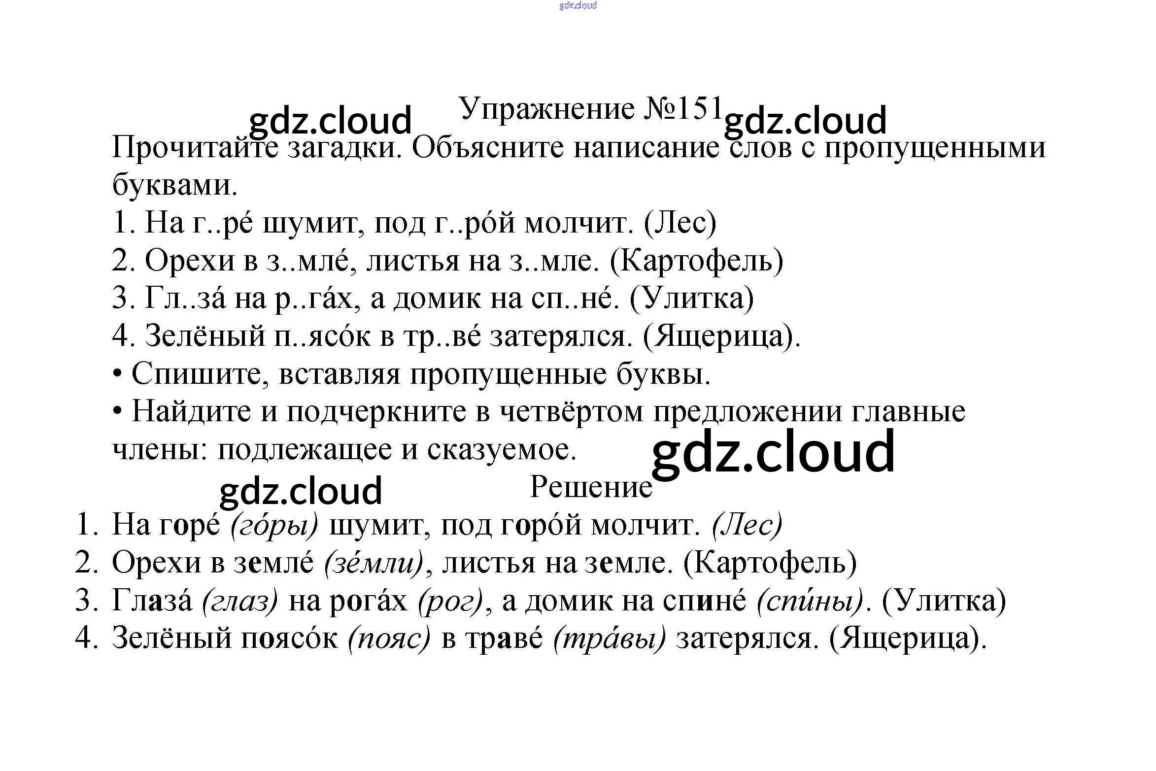 Ответ на задание упр.151 Учебник Русский язык за 2 (второй) класс Канакина, Горецкий Школа России 2013 Часть 1, 2