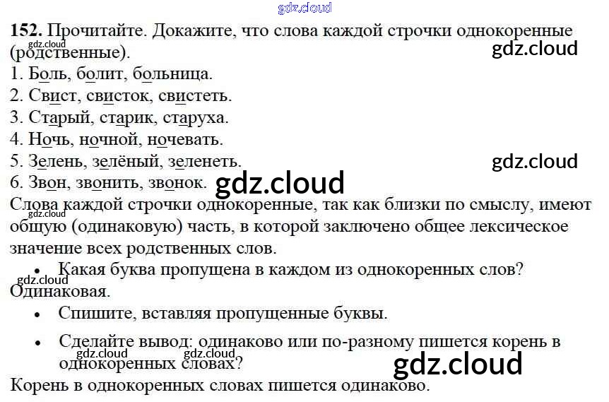 Ответ на задание упр.152 Учебник Русский язык за 2 (второй) класс Канакина, Горецкий Школа России 2013 Часть 1, 2