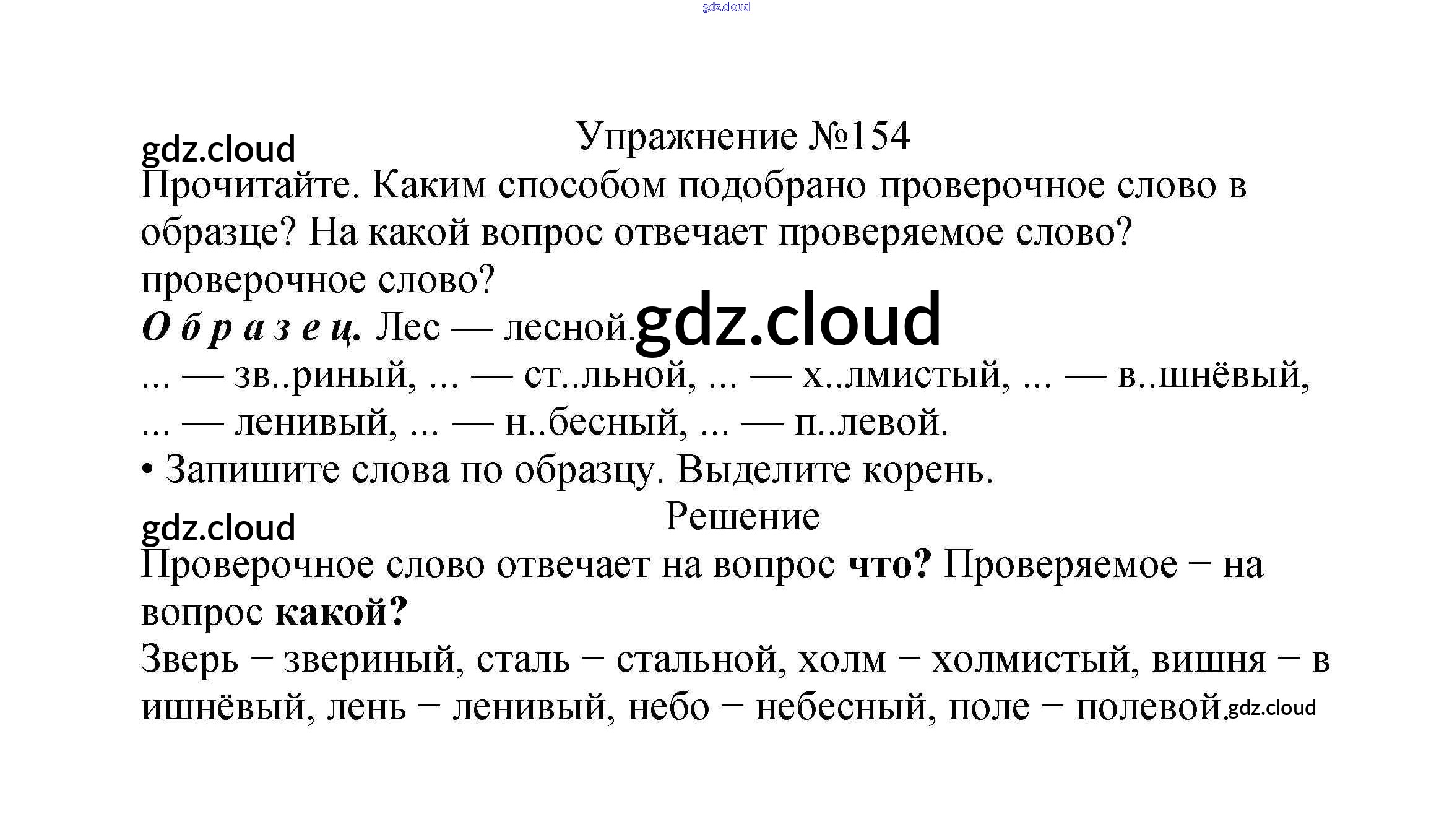 Ответ на задание упр.154 Учебник Русский язык за 2 (второй) класс Канакина, Горецкий Школа России 2013 Часть 1, 2