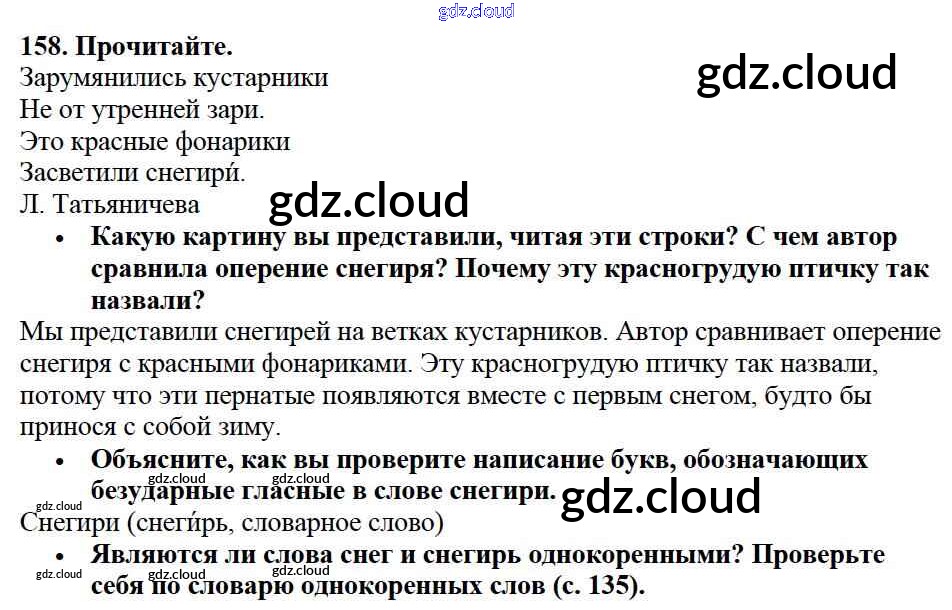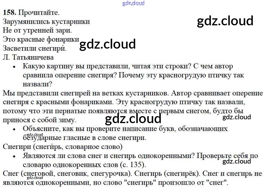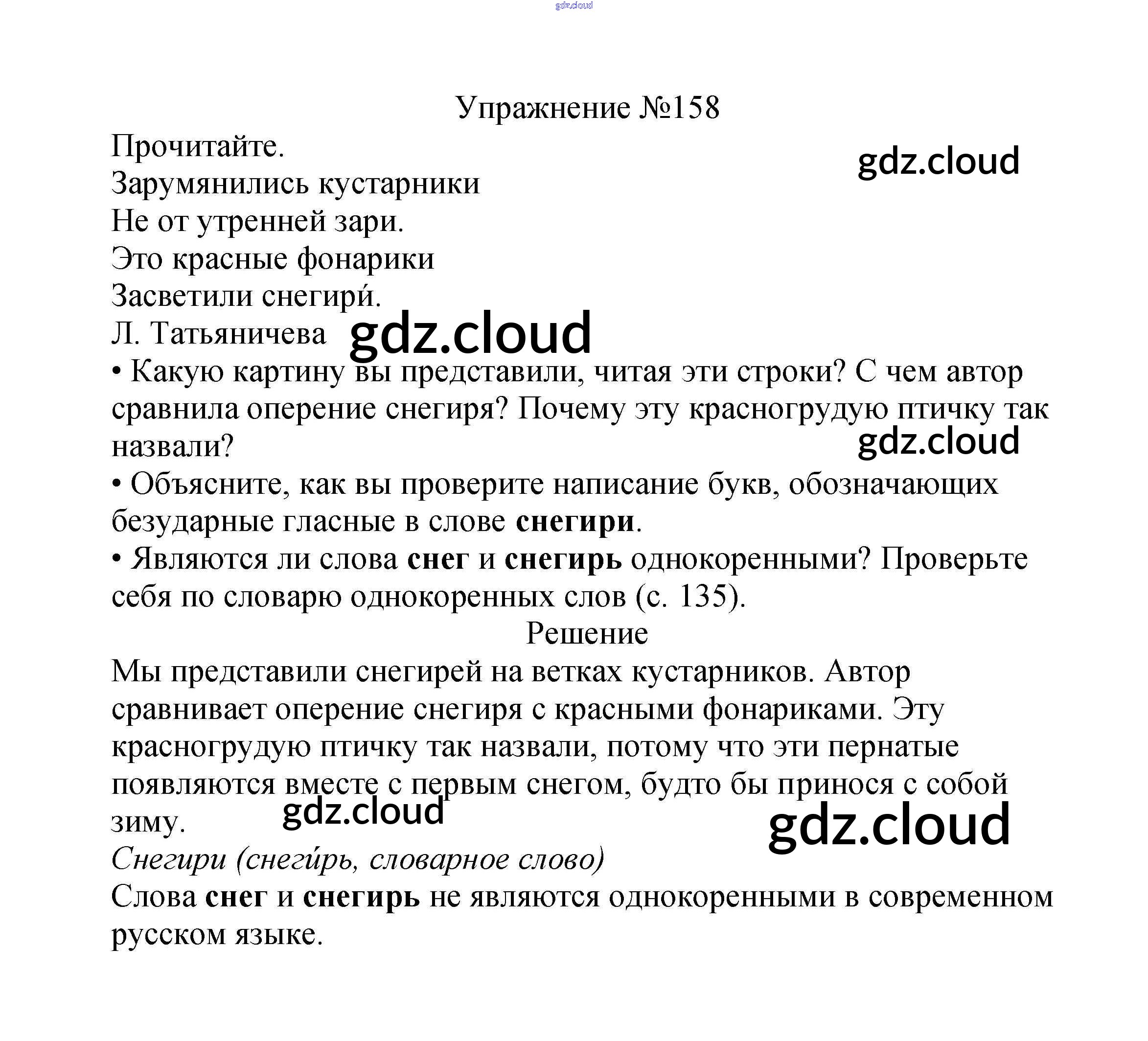 Ответ на задание упр.158 Учебник Русский язык за 2 (второй) класс Канакина, Горецкий Школа России 2013 Часть 1, 2