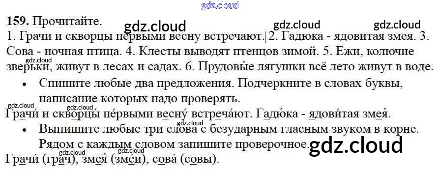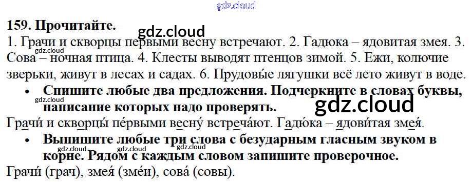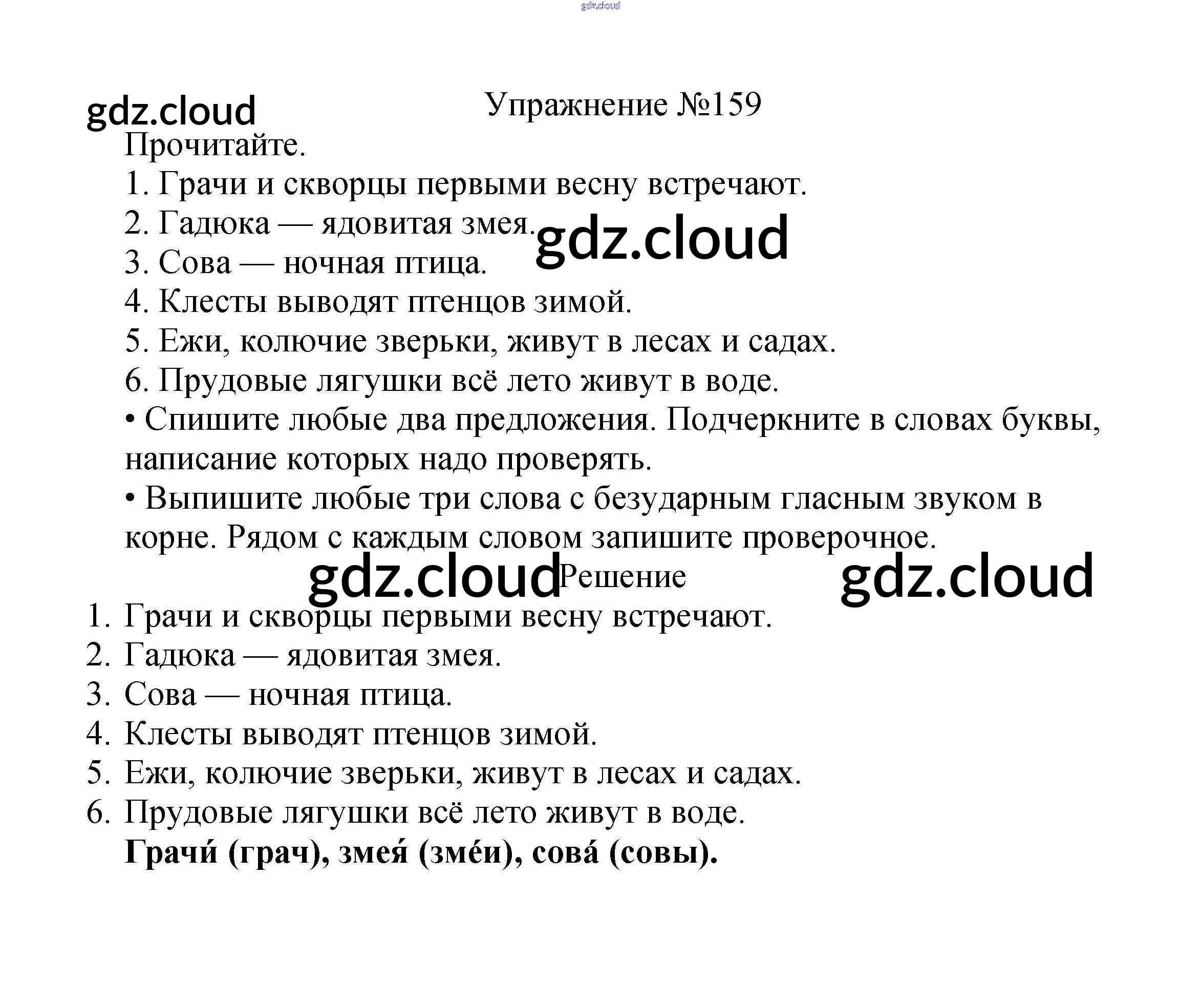Ответ на задание упр.159 Учебник Русский язык за 2 (второй) класс Канакина, Горецкий Школа России 2013 Часть 1, 2