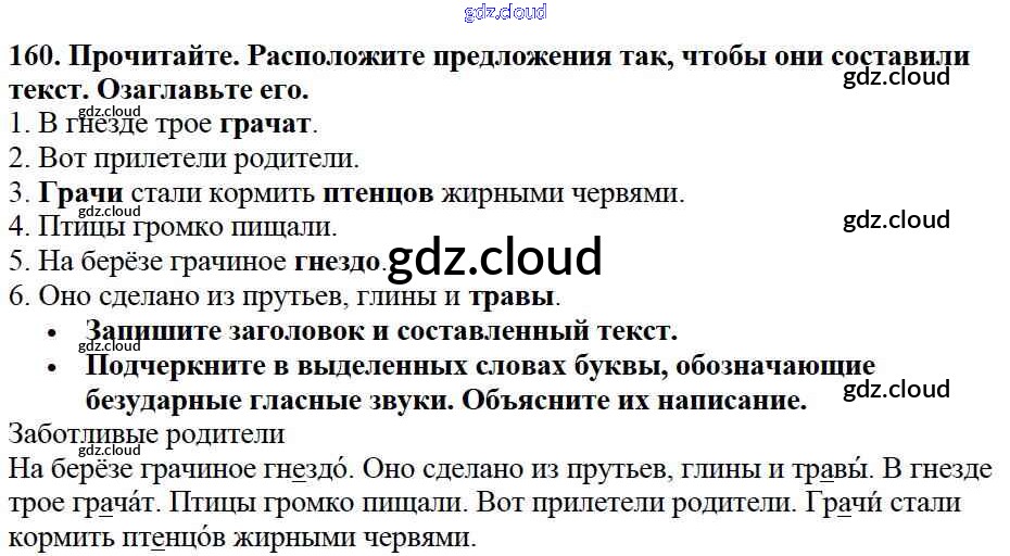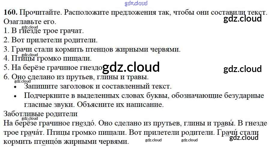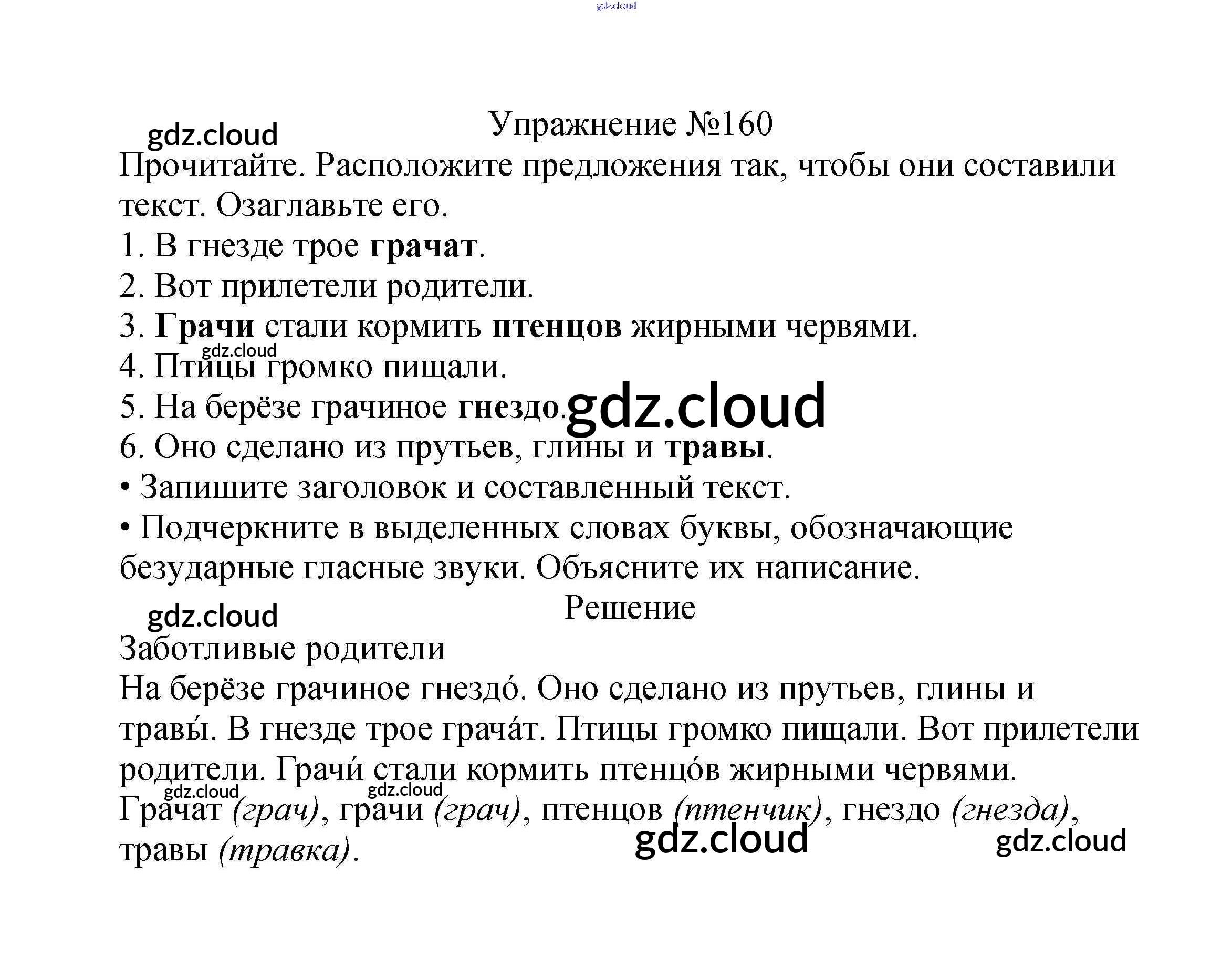 Ответ на задание упр.160 Учебник Русский язык за 2 (второй) класс Канакина, Горецкий Школа России 2013 Часть 1, 2