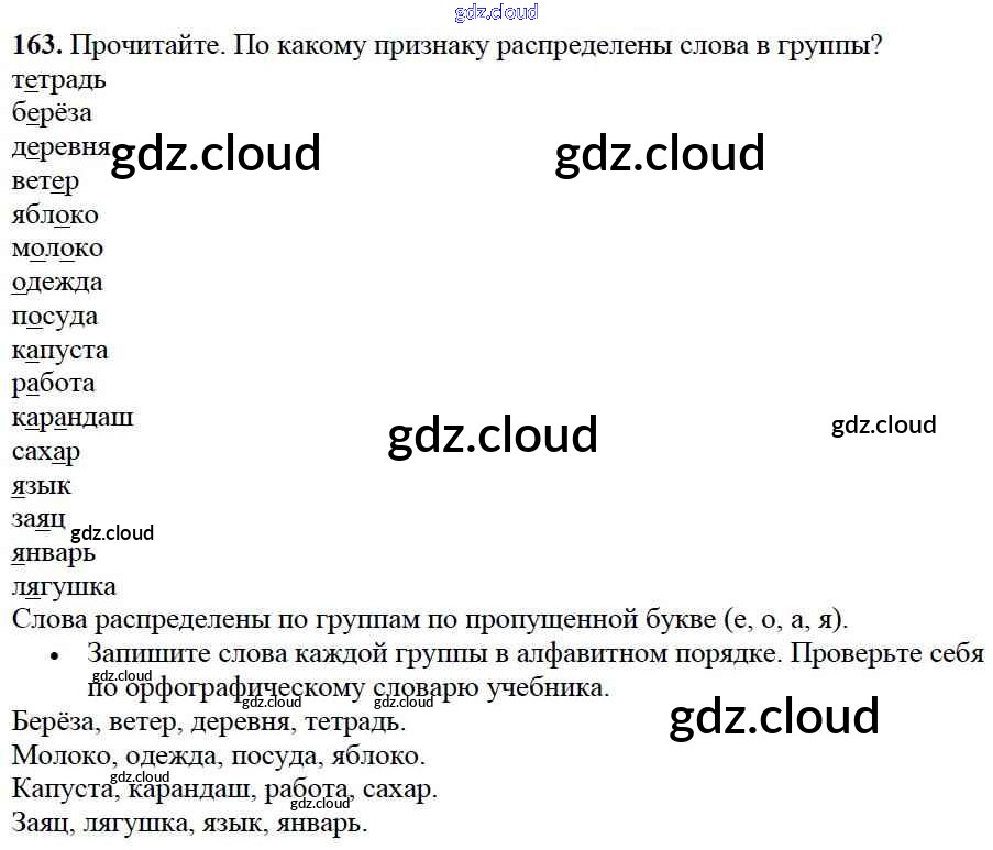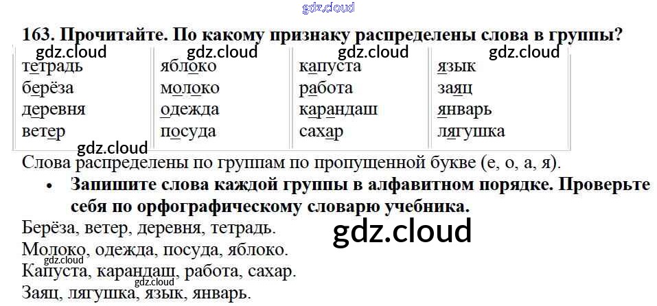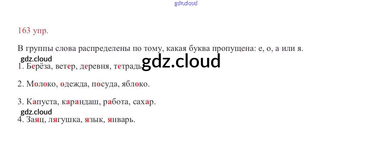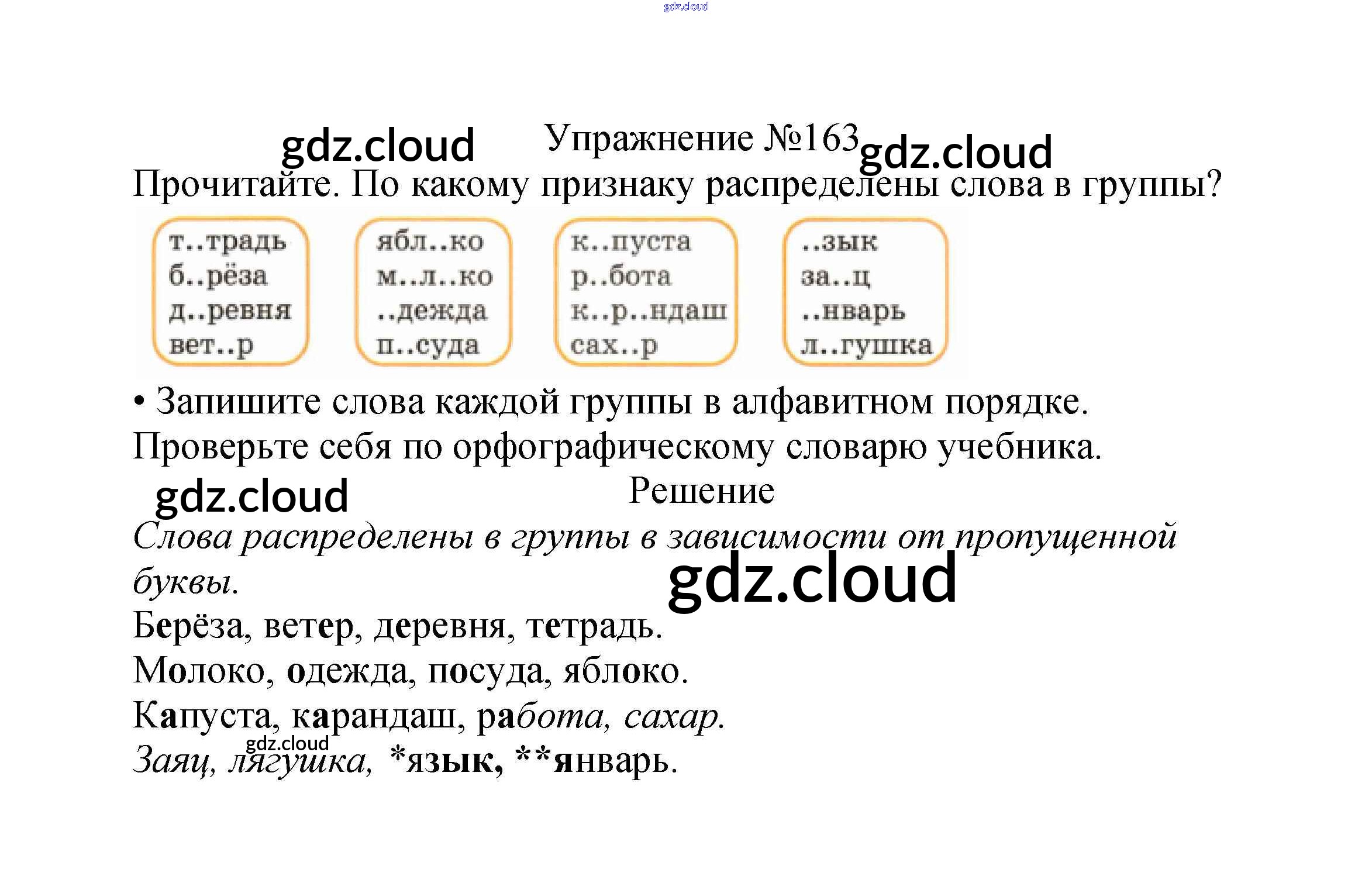 Ответ на задание упр.163 Учебник Русский язык за 2 (второй) класс Канакина, Горецкий Школа России 2013 Часть 1, 2