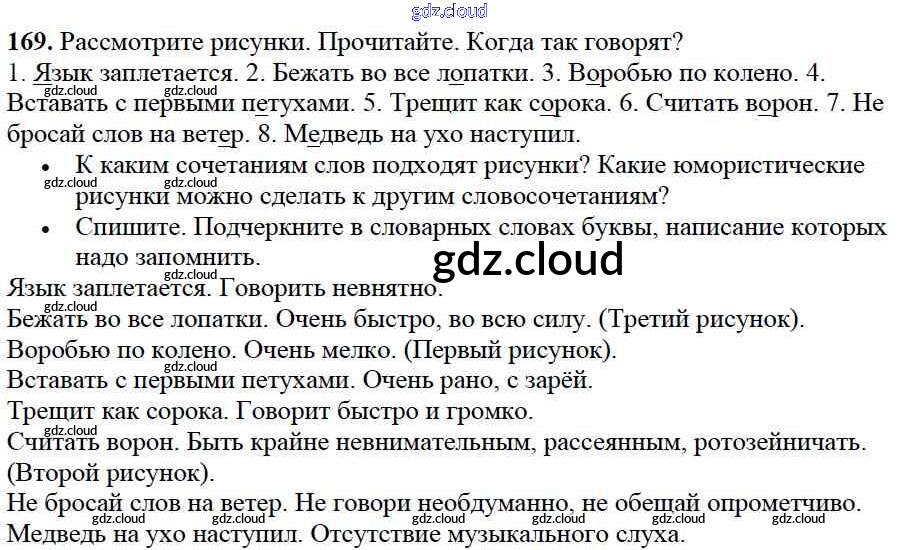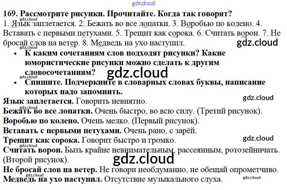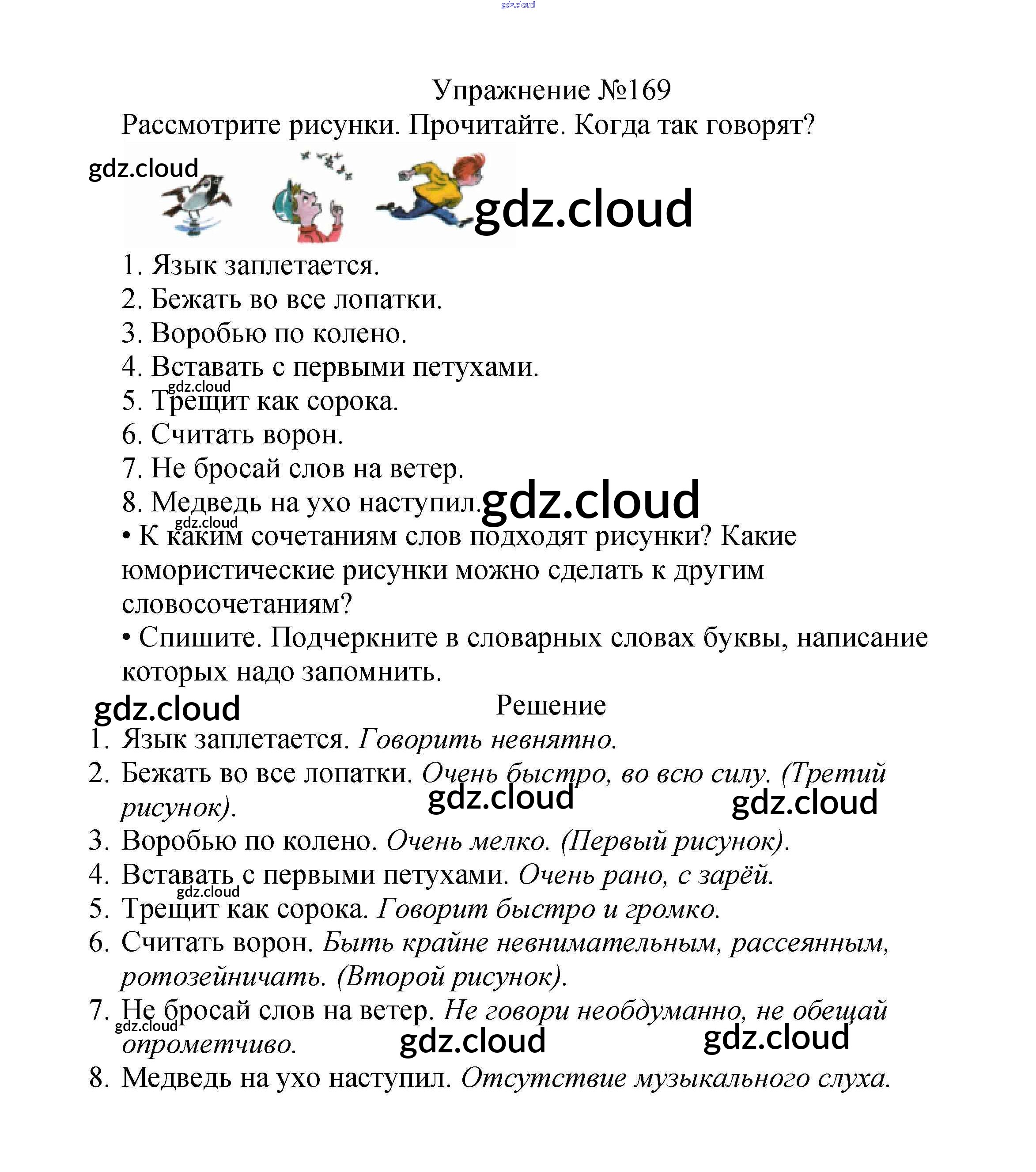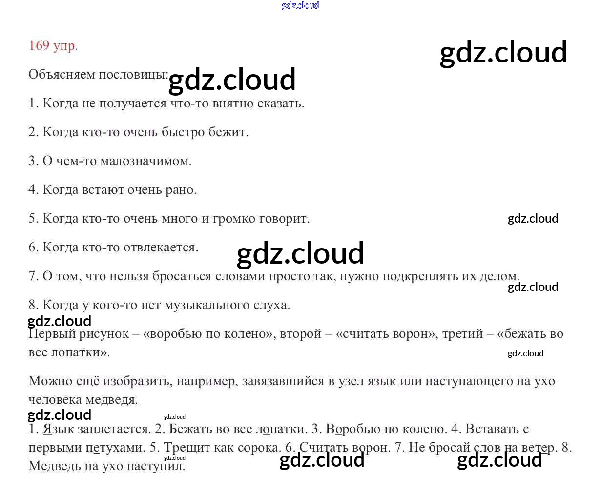Ответ на задание упр.169 Учебник Русский язык за 2 (второй) класс Канакина, Горецкий Школа России 2013 Часть 1, 2