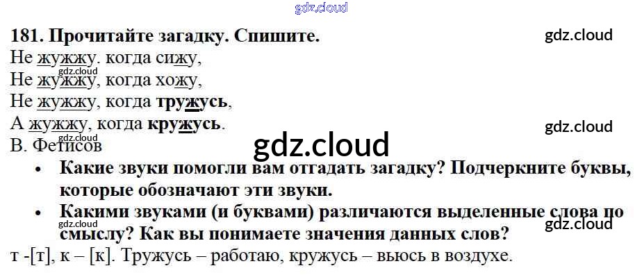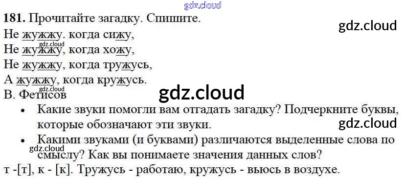 Ответ на задание упр.181 Учебник Русский язык за 2 (второй) класс Канакина, Горецкий Школа России 2013 Часть 1, 2