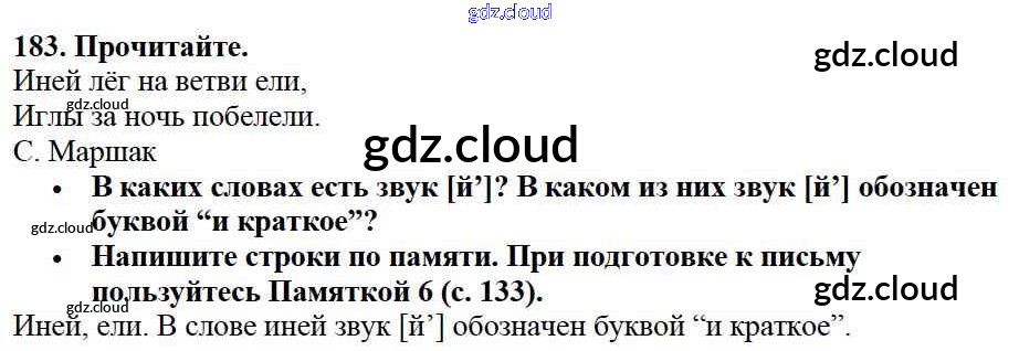 Ответ на задание упр.183 Учебник Русский язык за 2 (второй) класс Канакина, Горецкий Школа России 2013 Часть 1, 2