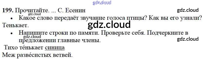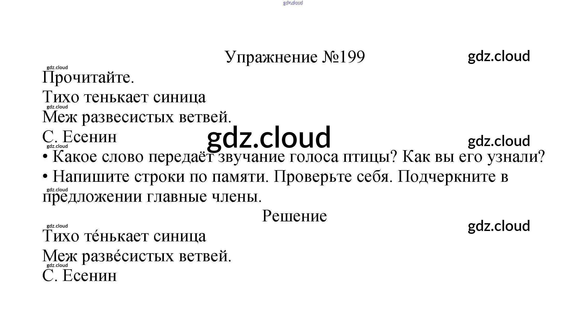 Ответ на задание упр.199 Учебник Русский язык за 2 (второй) класс Канакина, Горецкий Школа России 2013 Часть 1, 2