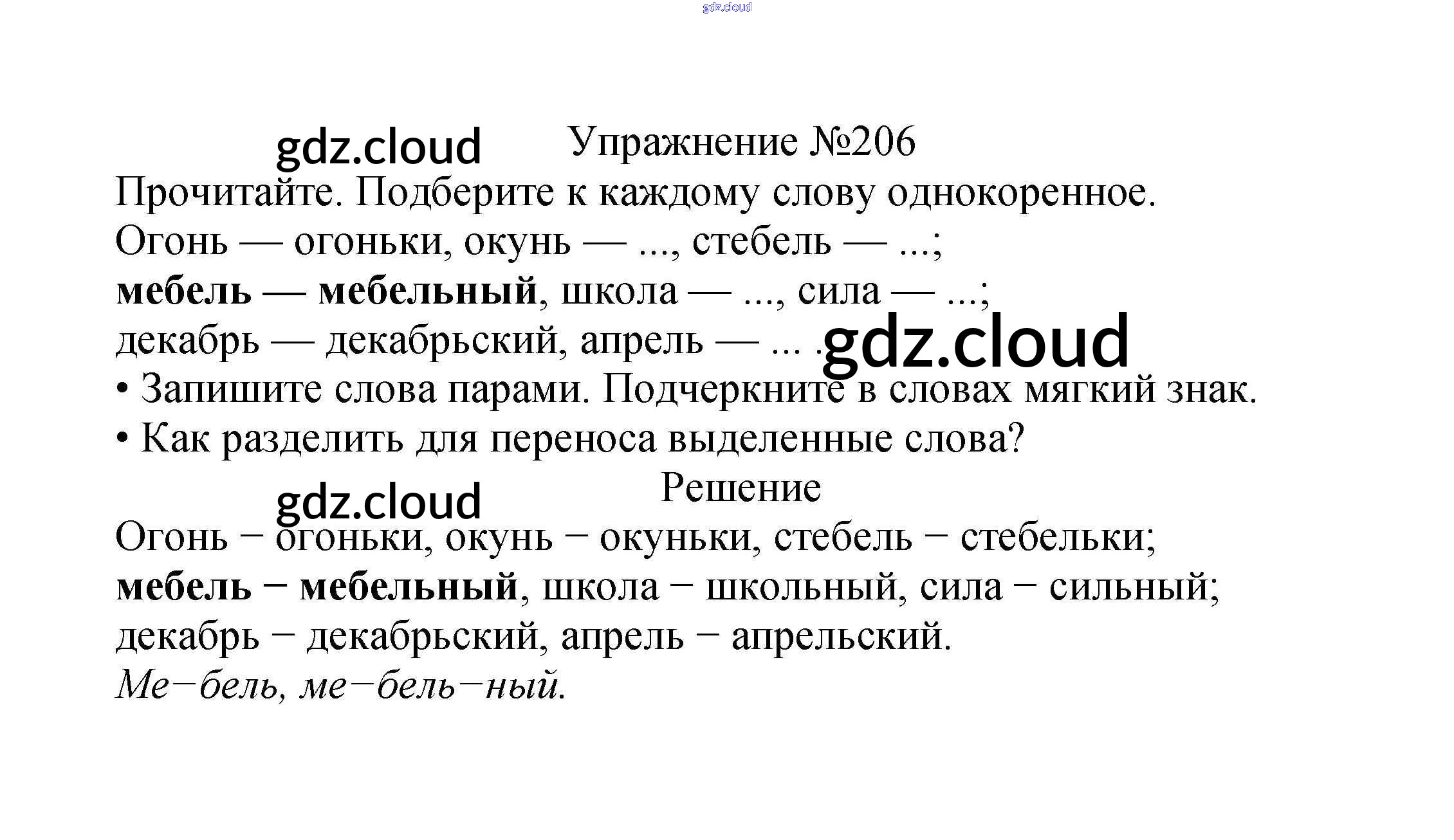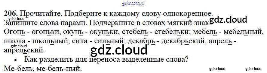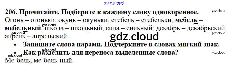 Ответ на задание упр.206 Учебник Русский язык за 2 (второй) класс Канакина, Горецкий Школа России 2013 Часть 1, 2