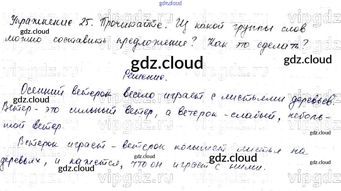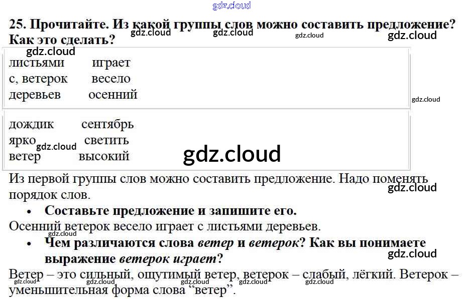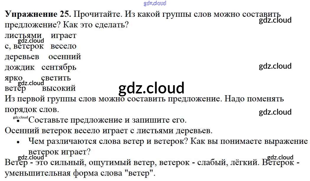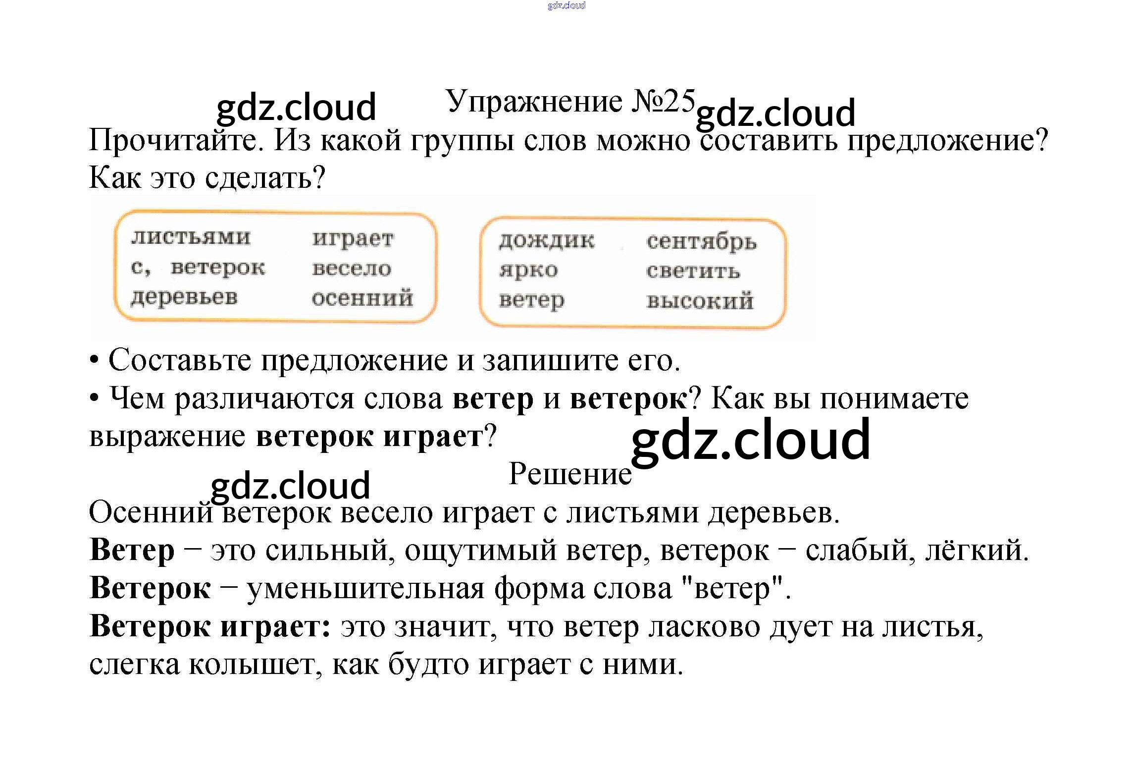 Ответ на задание упр.25 Учебник Русский язык за 2 (второй) класс Канакина, Горецкий Школа России 2013 Часть 1, 2