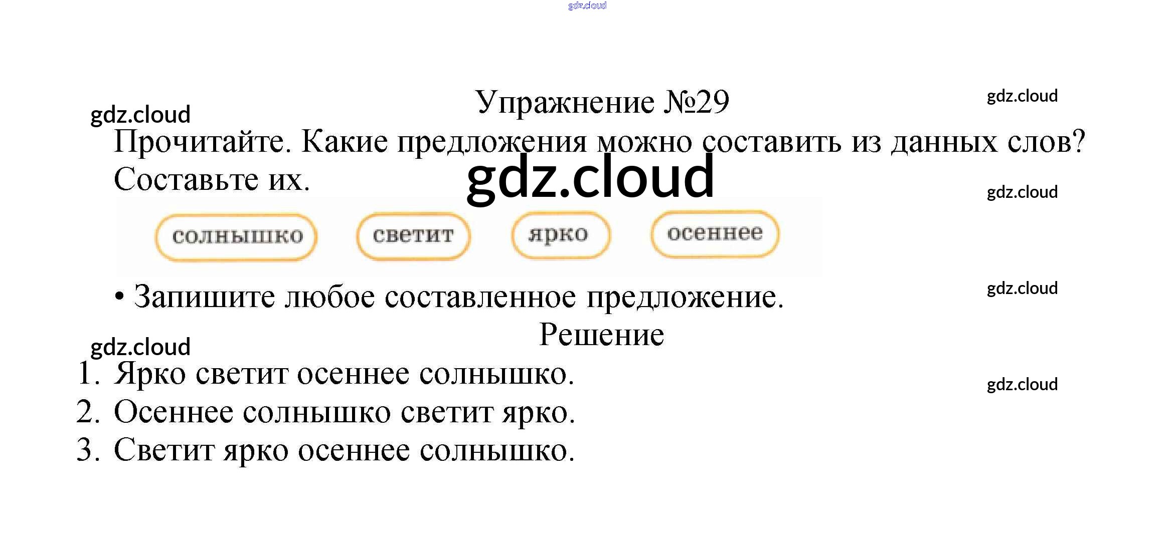Ответ на задание упр.29 Учебник Русский язык за 2 (второй) класс Канакина, Горецкий Школа России 2013 Часть 1, 2