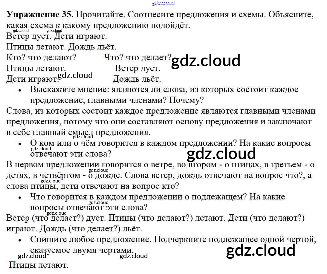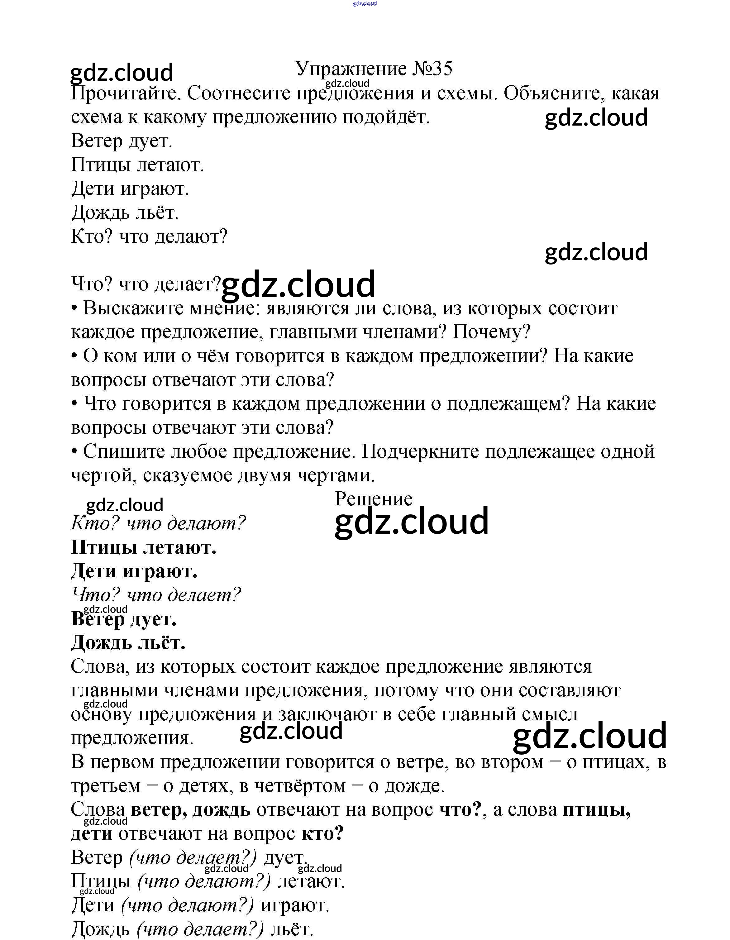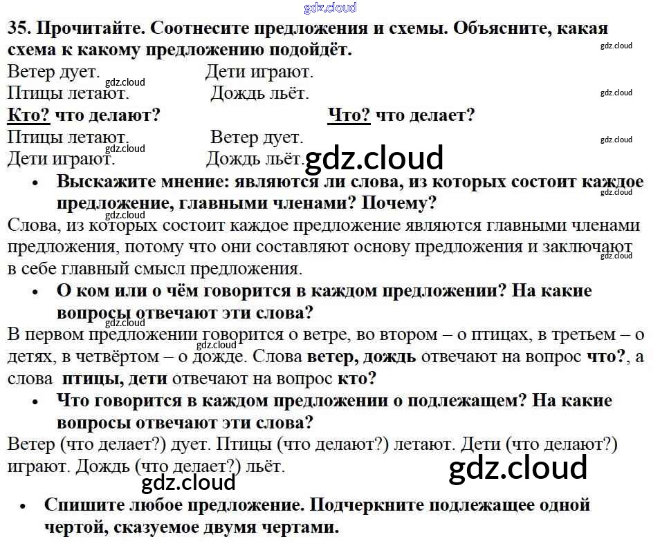 Ответ на задание упр.35 Учебник Русский язык за 2 (второй) класс Канакина, Горецкий Школа России 2013 Часть 1, 2