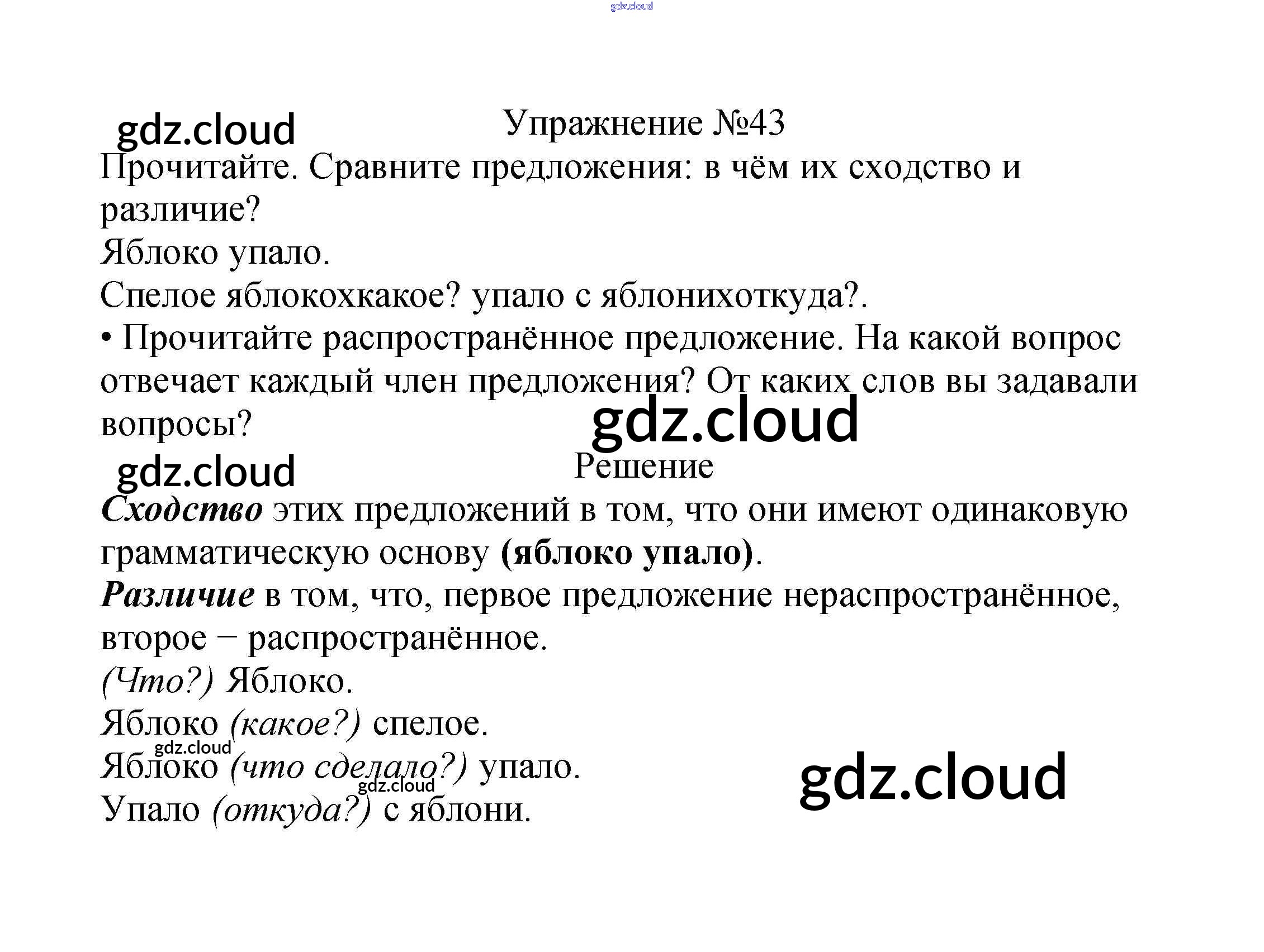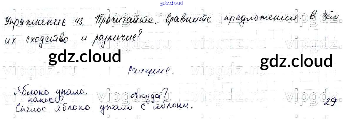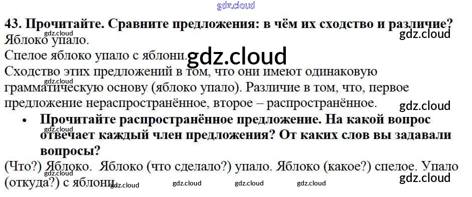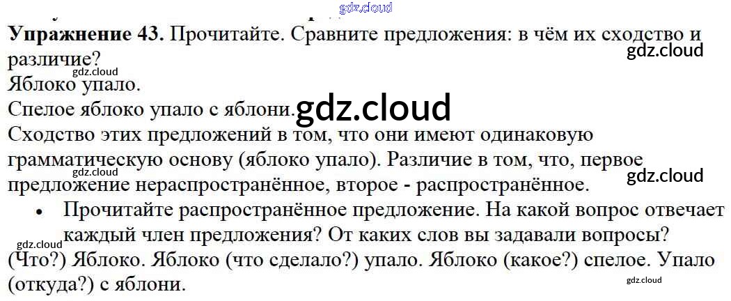 Ответ на задание упр.43 Учебник Русский язык за 2 (второй) класс Канакина, Горецкий Школа России 2013 Часть 1, 2