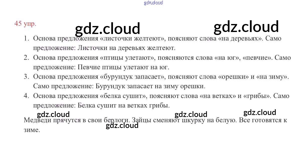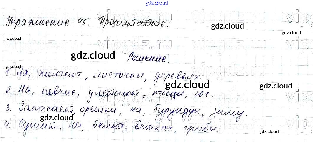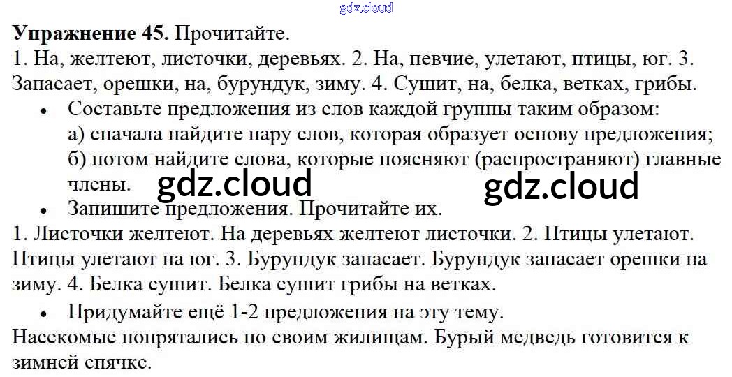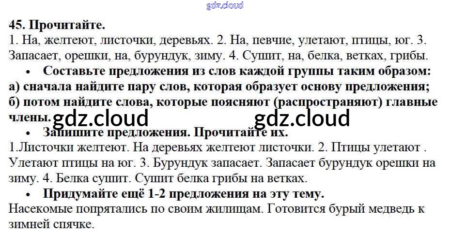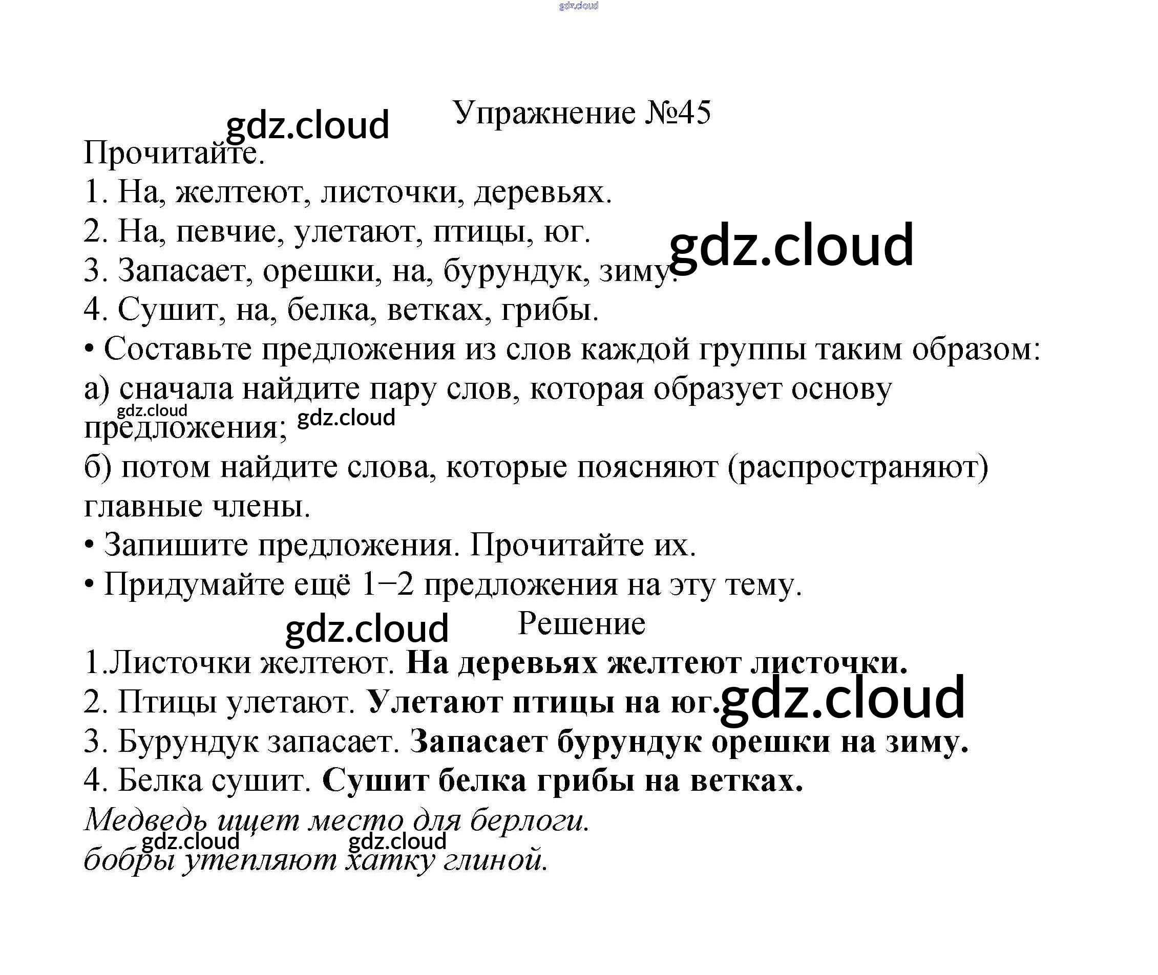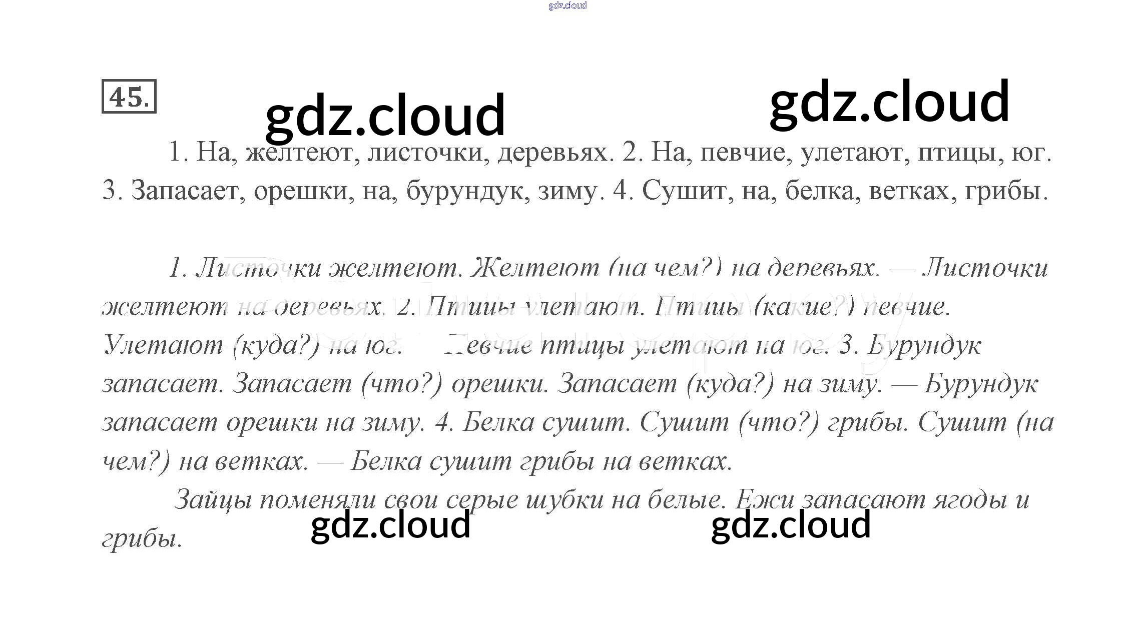 Ответ на задание упр.45 Учебник Русский язык за 2 (второй) класс Канакина, Горецкий Школа России 2013 Часть 1, 2