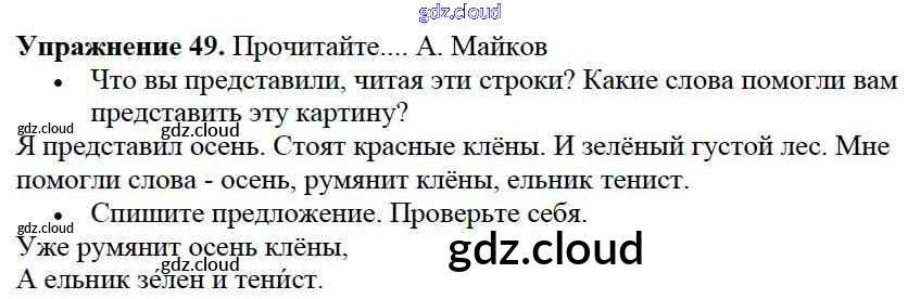 Ответ на задание упр.49 Учебник Русский язык за 2 (второй) класс Канакина, Горецкий Школа России 2013 Часть 1, 2