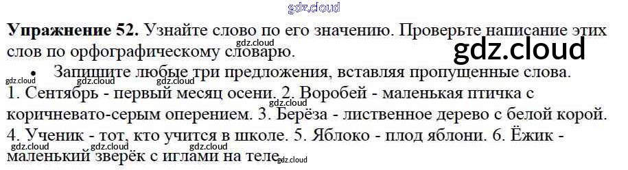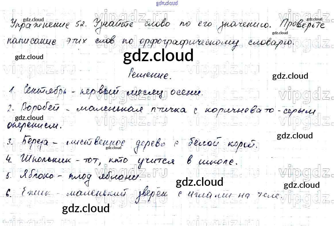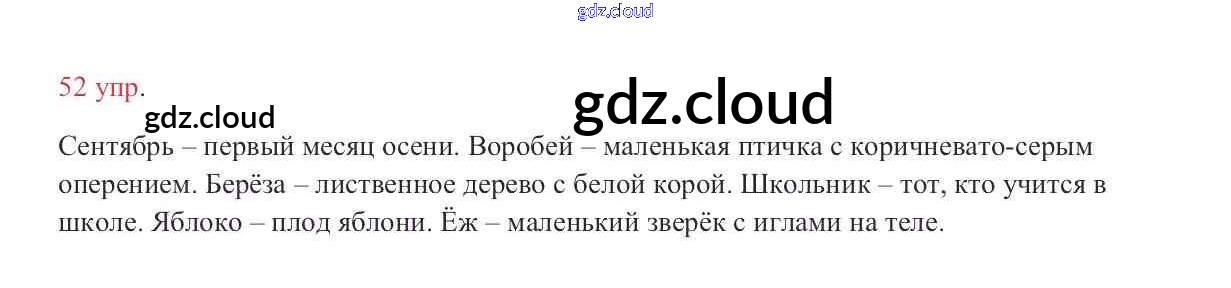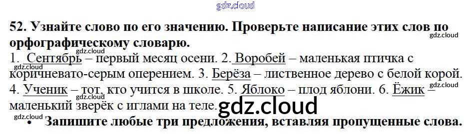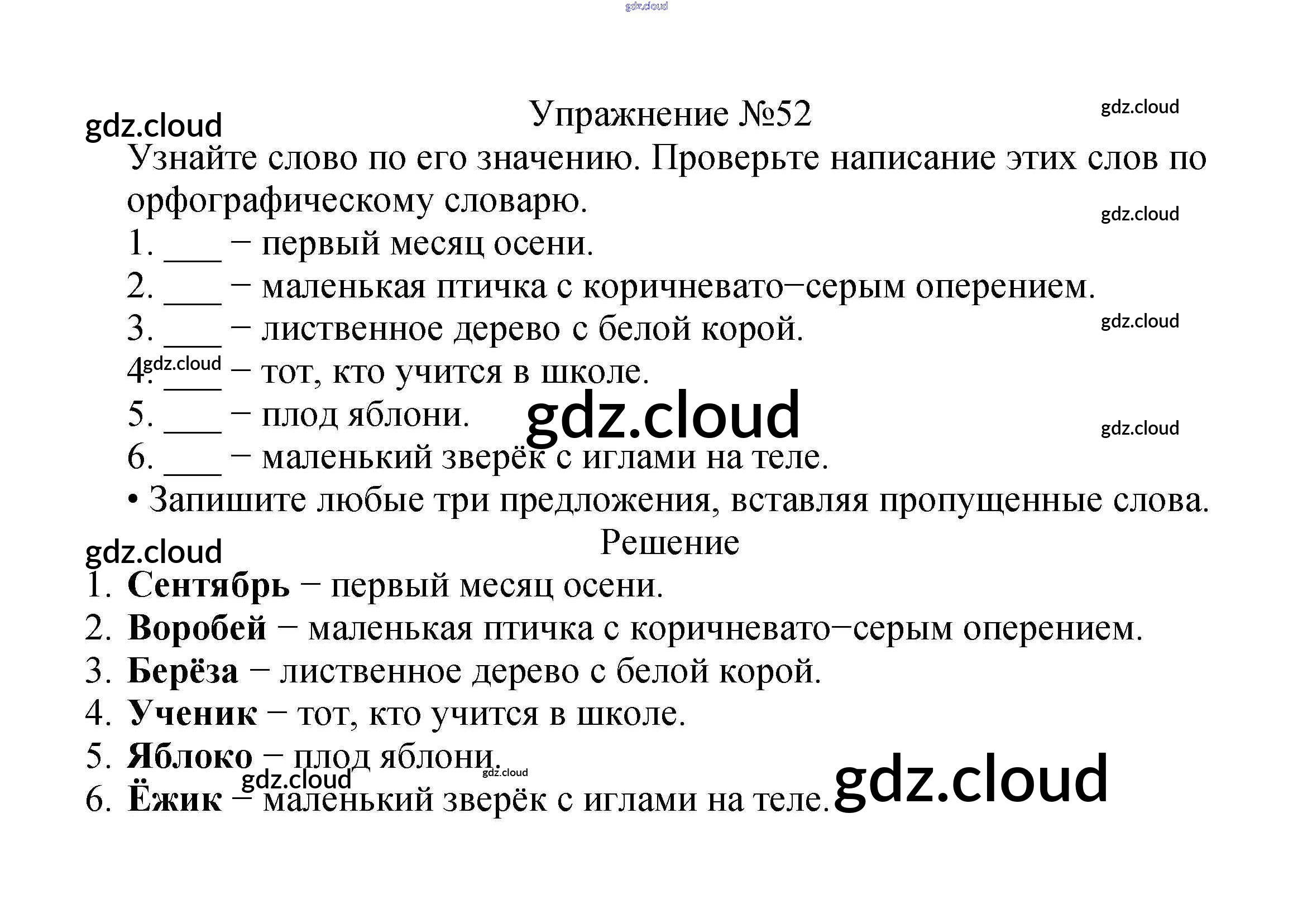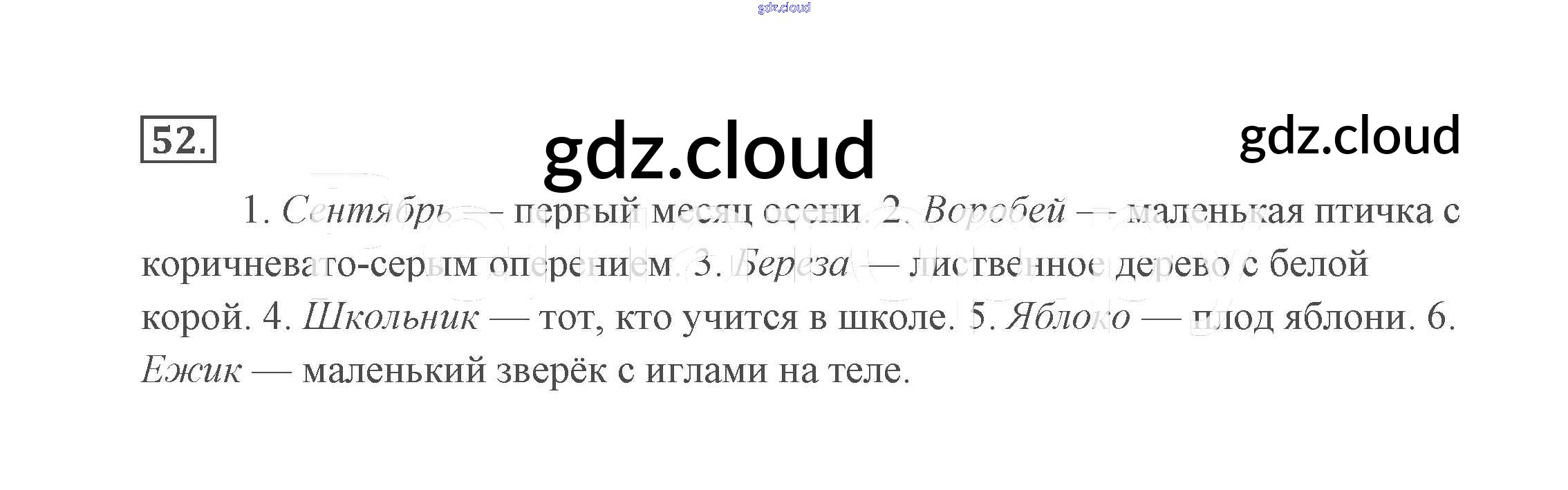 Ответ на задание упр.52 Учебник Русский язык за 2 (второй) класс Канакина, Горецкий Школа России 2013 Часть 1, 2
