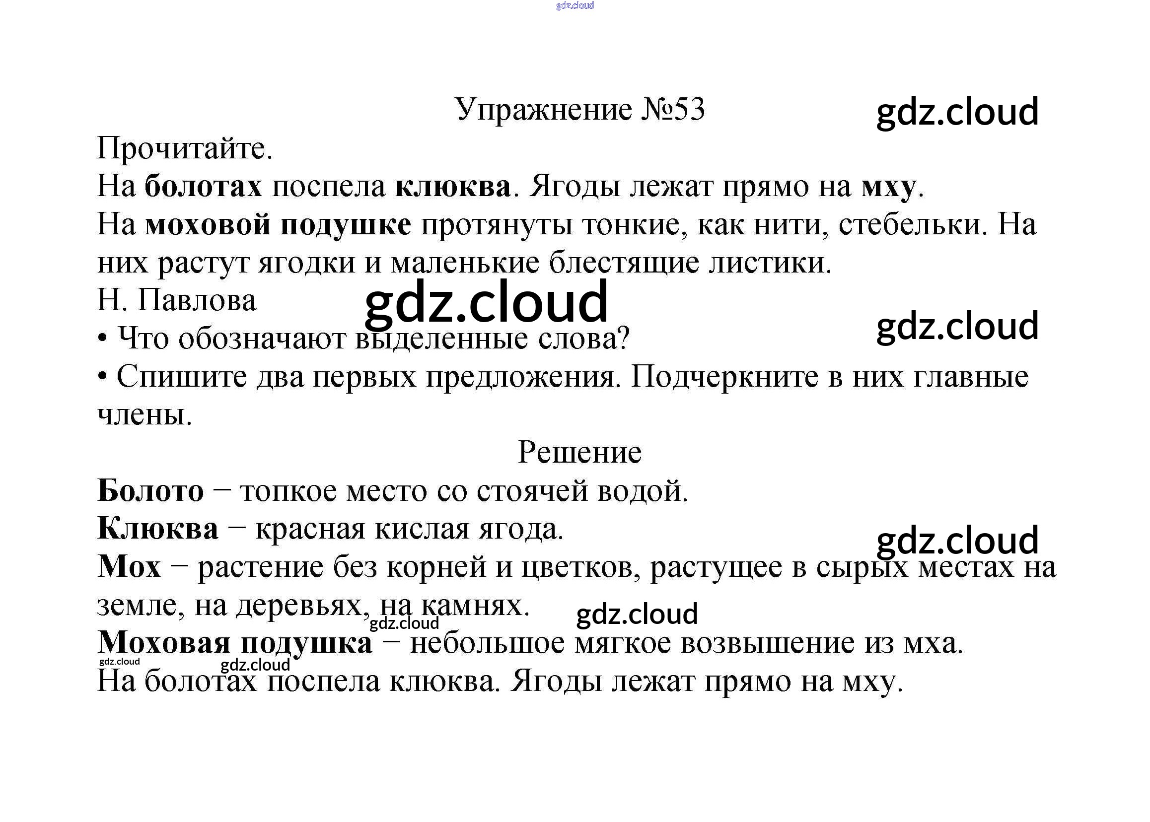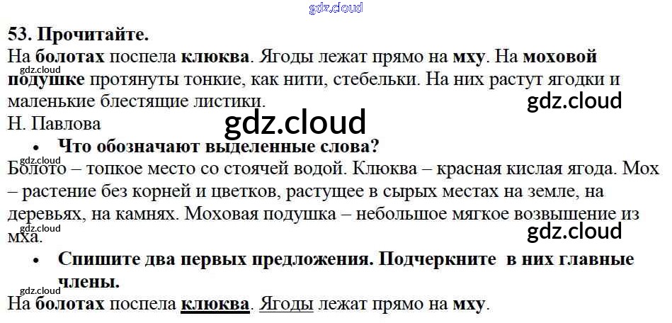 Ответ на задание упр.53 Учебник Русский язык за 2 (второй) класс Канакина, Горецкий Школа России 2013 Часть 1, 2