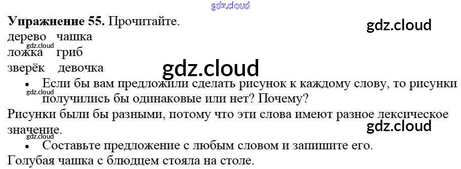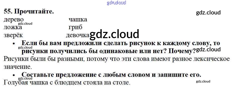 Ответ на задание упр.55 Учебник Русский язык за 2 (второй) класс Канакина, Горецкий Школа России 2013 Часть 1, 2