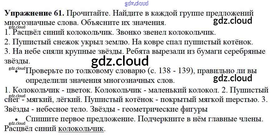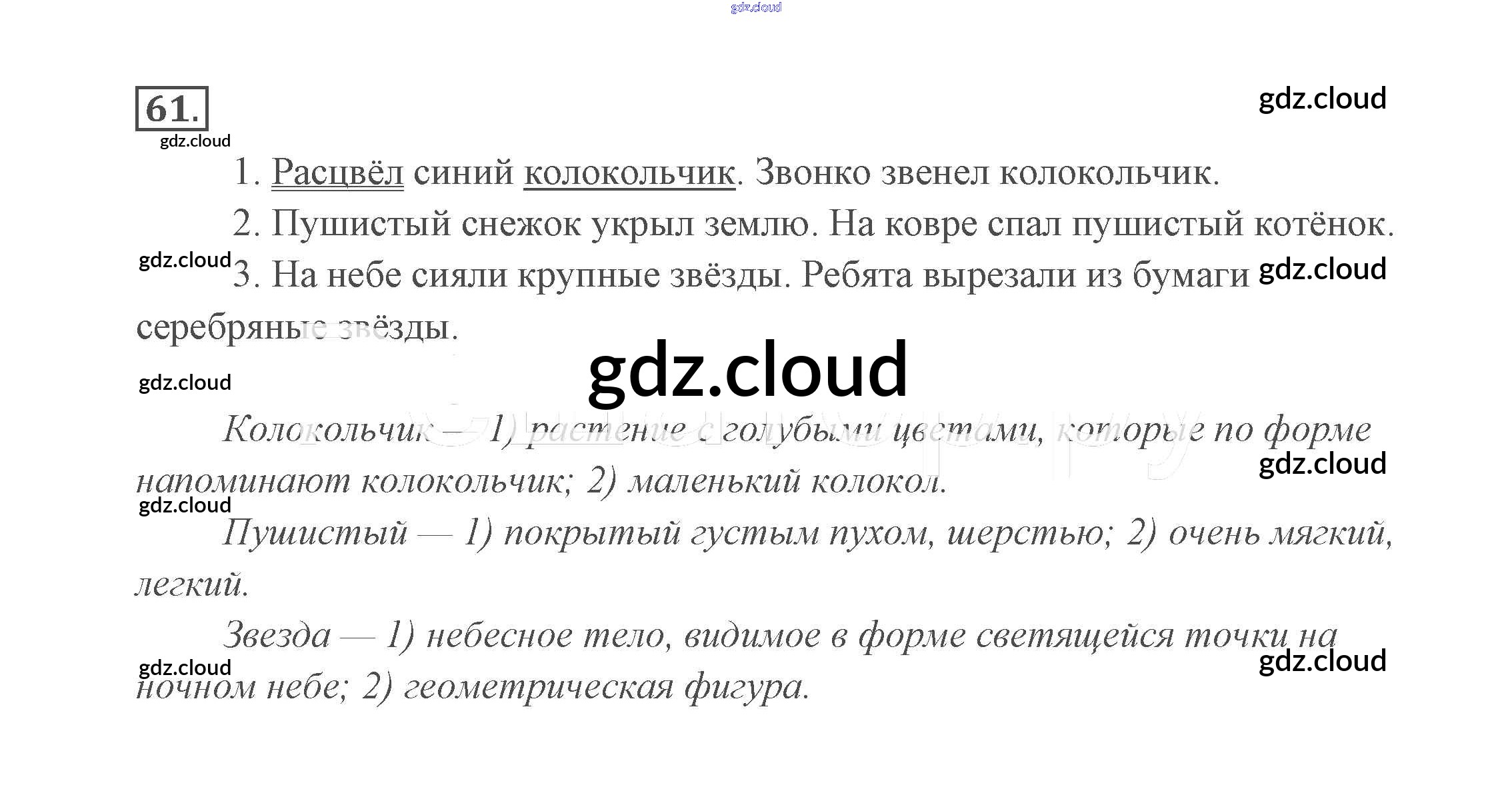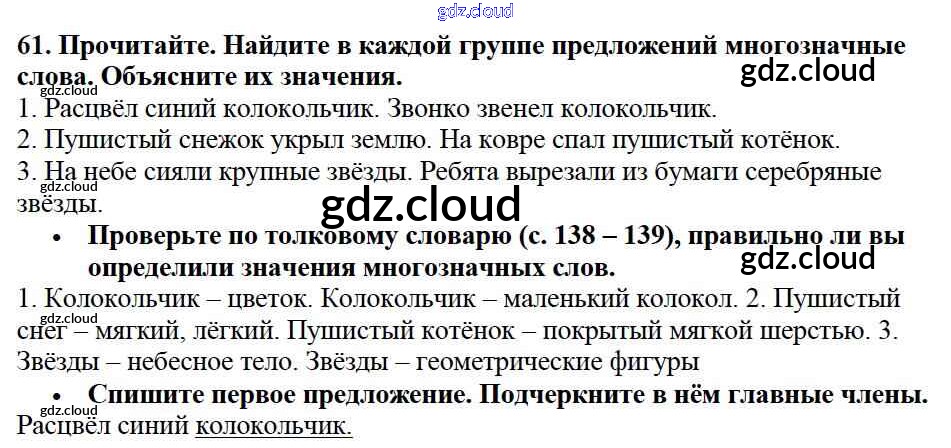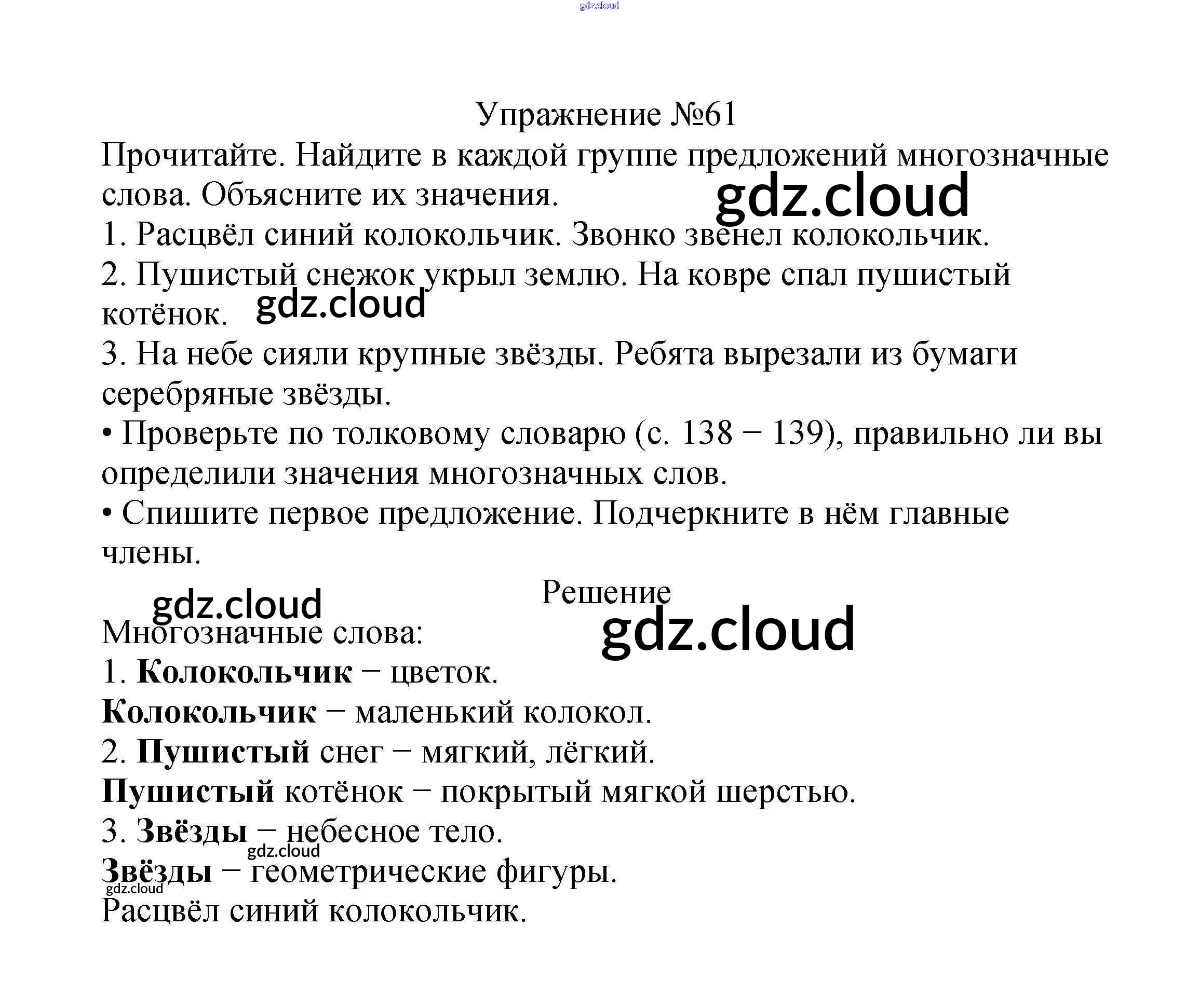 Ответ на задание упр.61 Учебник Русский язык за 2 (второй) класс Канакина, Горецкий Школа России 2013 Часть 1, 2