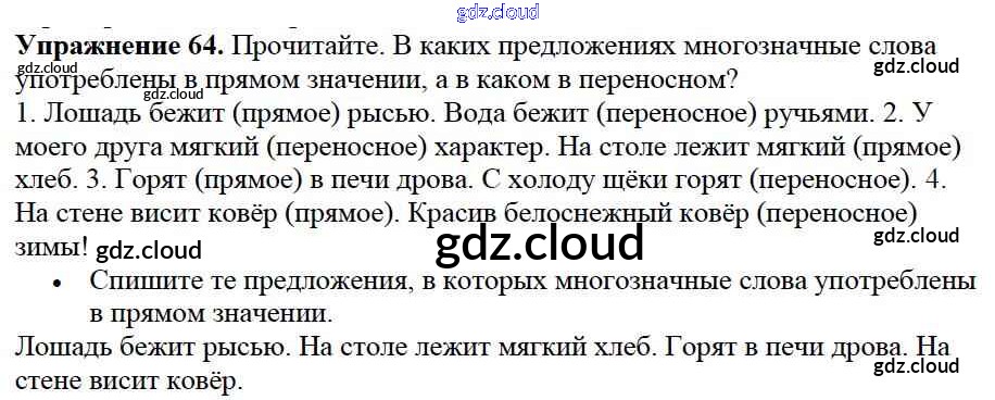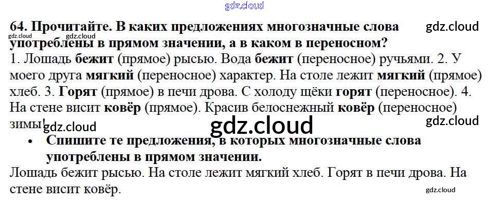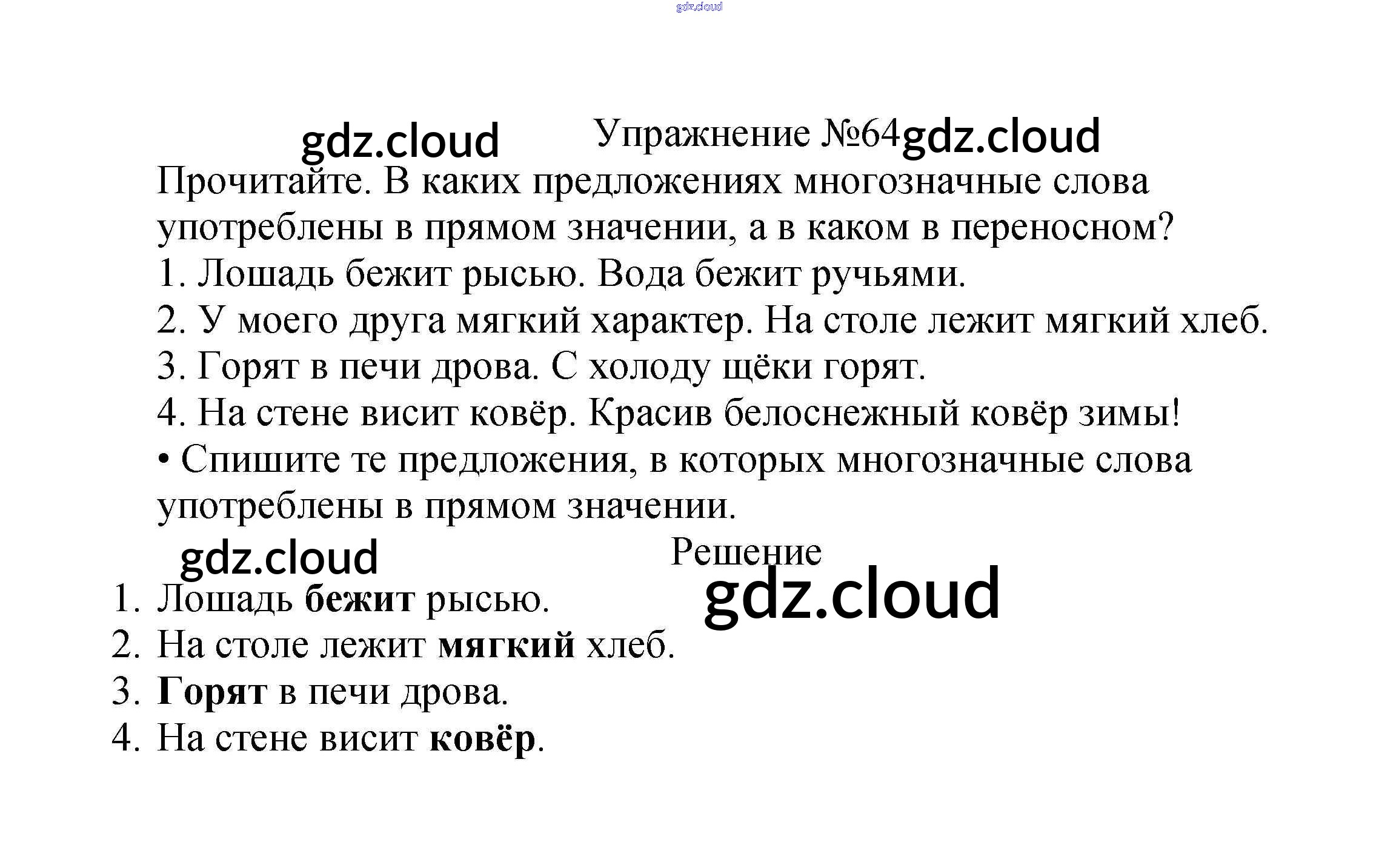 Ответ на задание упр.64 Учебник Русский язык за 2 (второй) класс Канакина, Горецкий Школа России 2013 Часть 1, 2