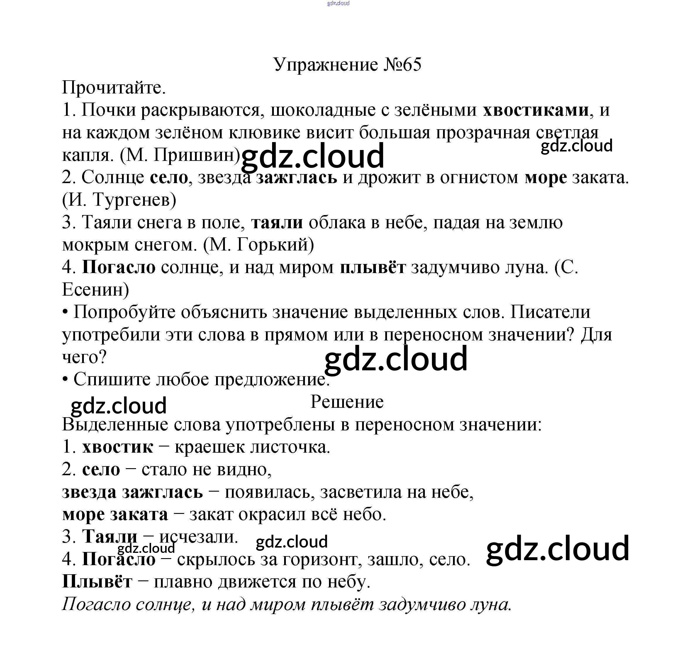 Ответ на задание упр.65 Учебник Русский язык за 2 (второй) класс Канакина, Горецкий Школа России 2013 Часть 1, 2