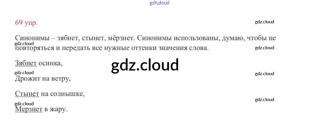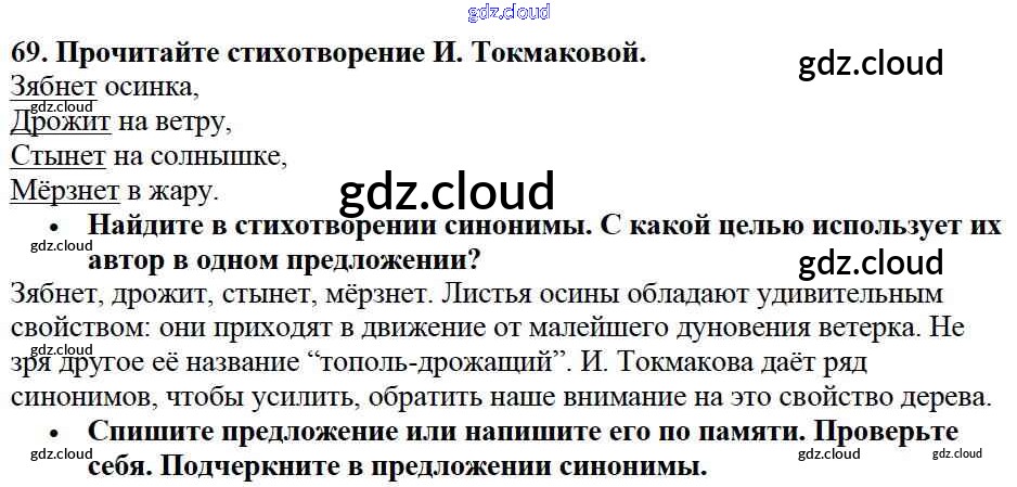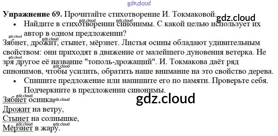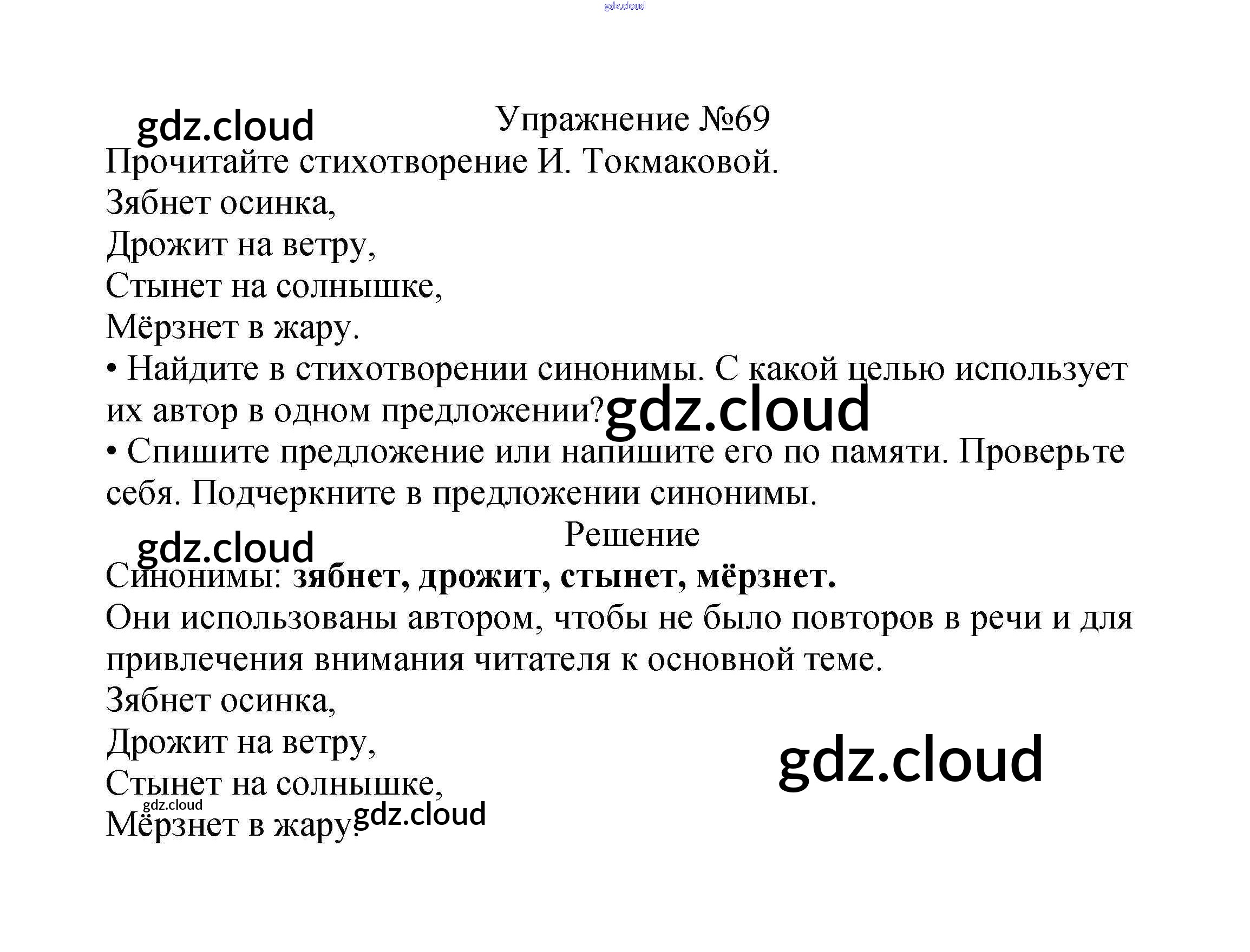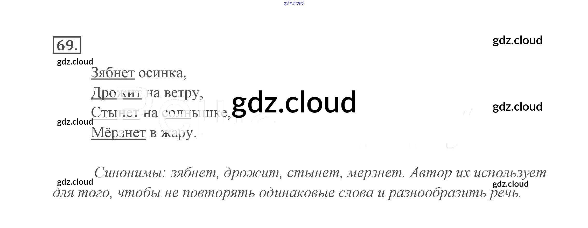 Ответ на задание упр.69 Учебник Русский язык за 2 (второй) класс Канакина, Горецкий Школа России 2013 Часть 1, 2