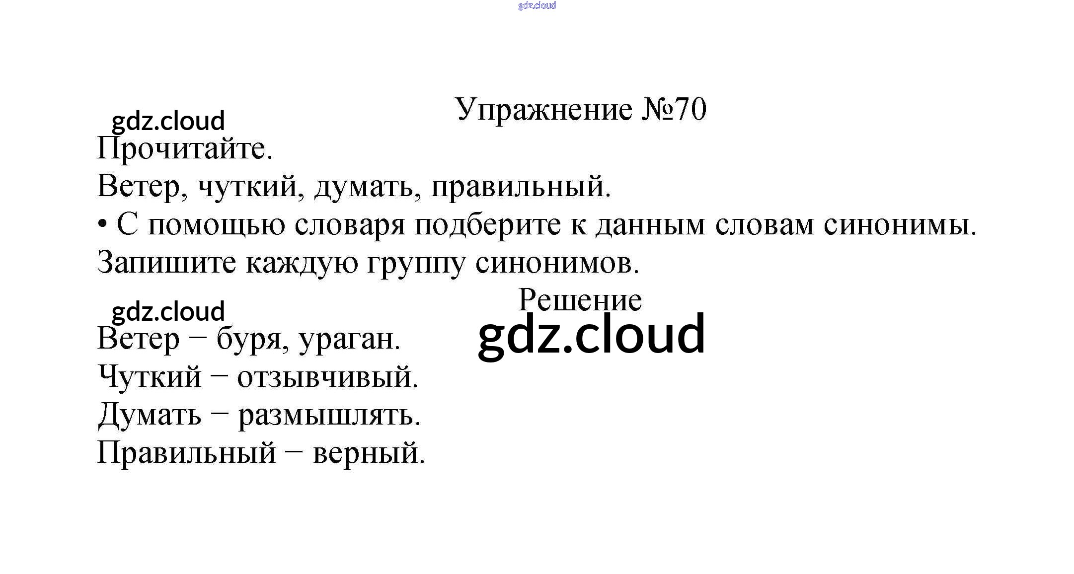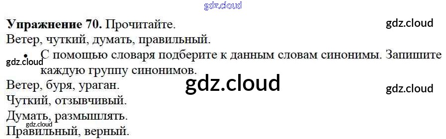 Ответ на задание упр.70 Учебник Русский язык за 2 (второй) класс Канакина, Горецкий Школа России 2013 Часть 1, 2