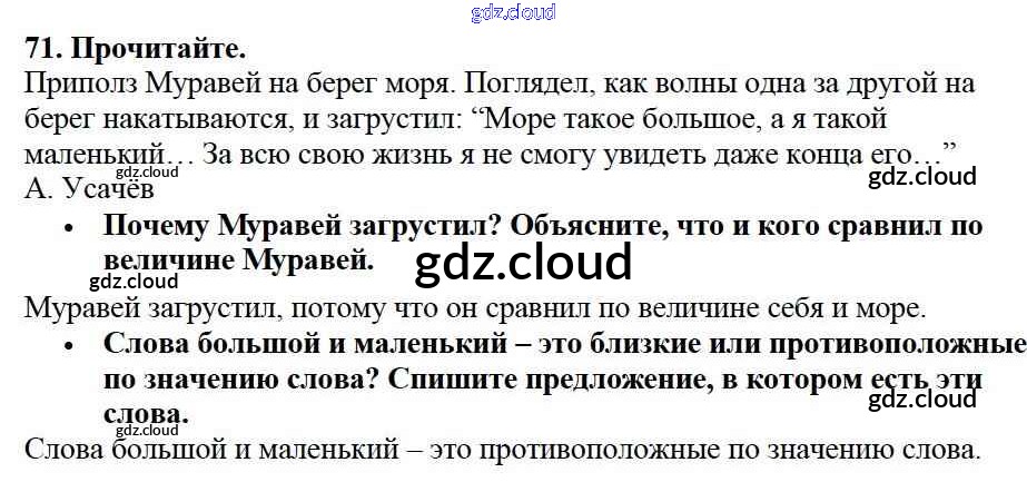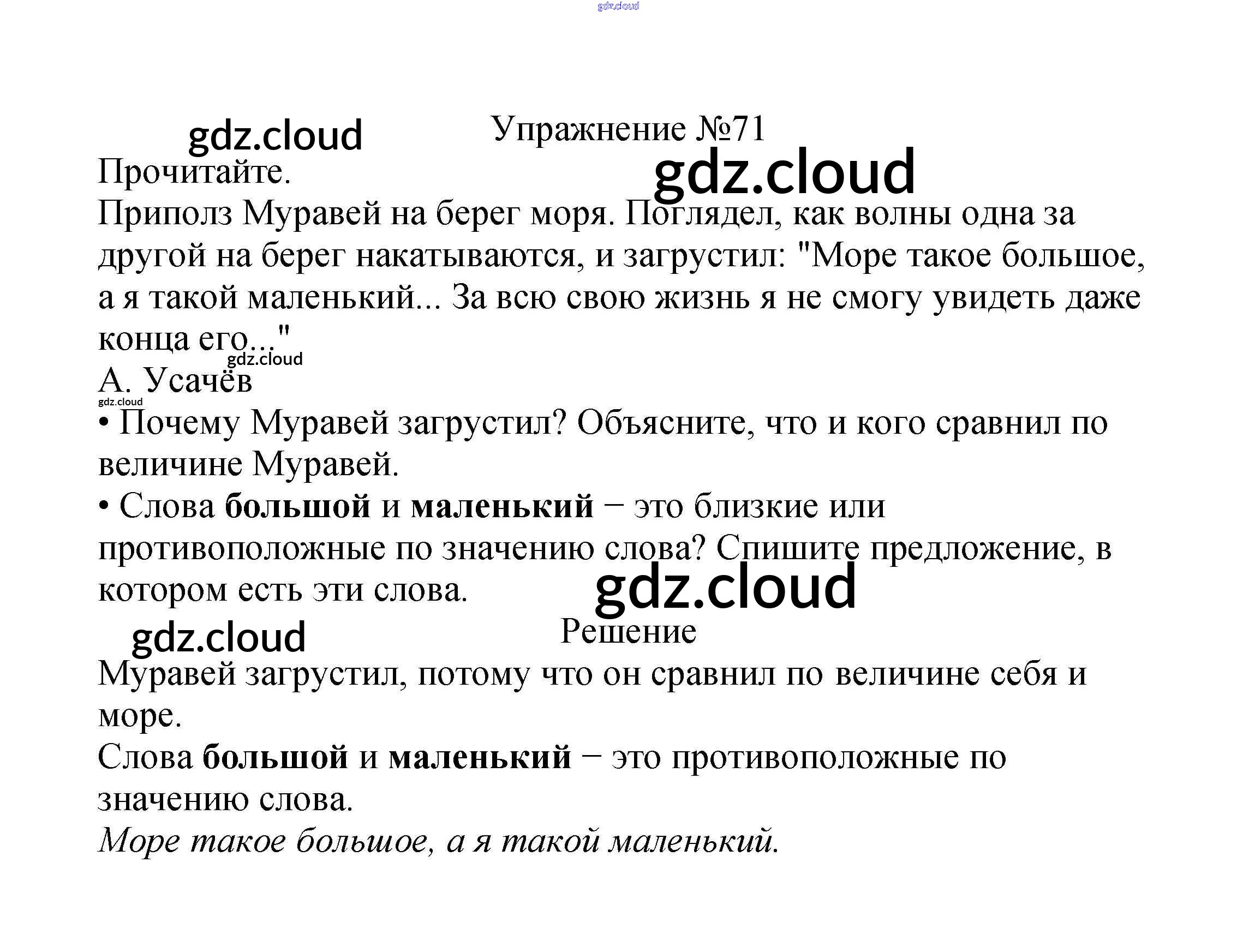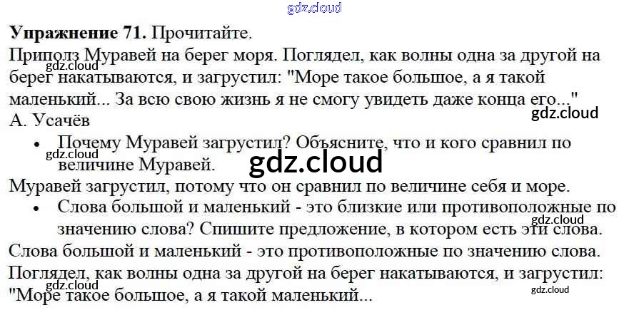 Ответ на задание упр.71 Учебник Русский язык за 2 (второй) класс Канакина, Горецкий Школа России 2013 Часть 1, 2