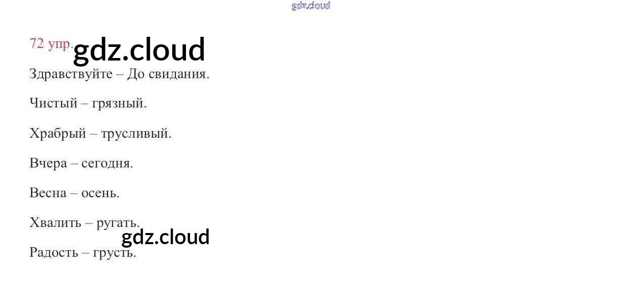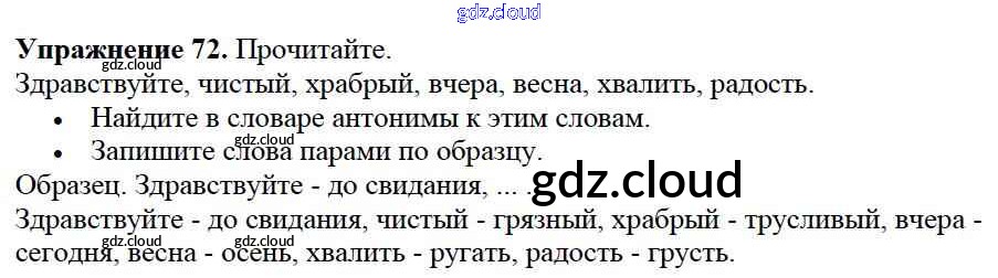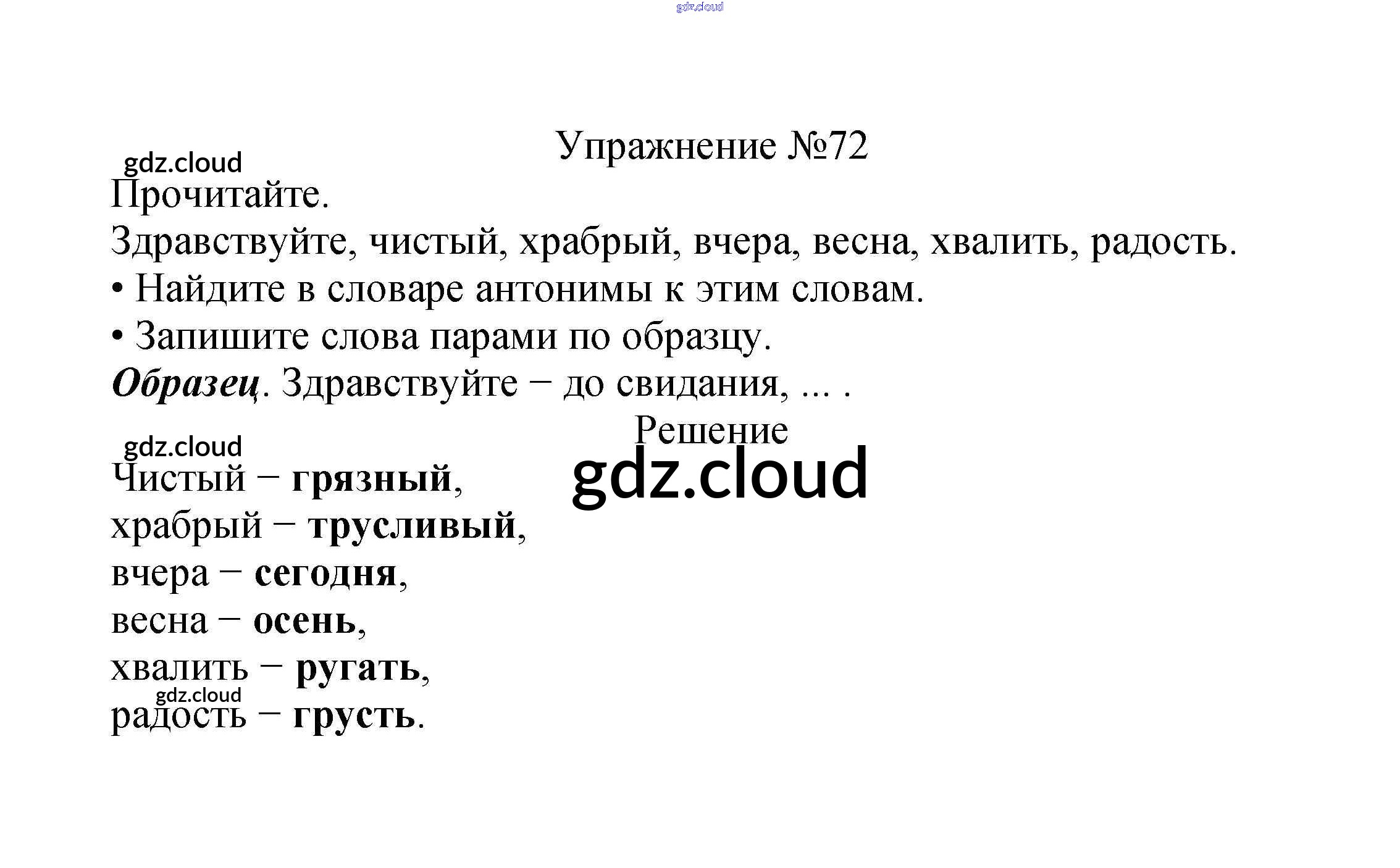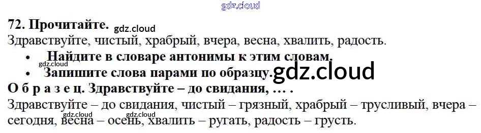Ответ на задание упр.72 Учебник Русский язык за 2 (второй) класс Канакина, Горецкий Школа России 2013 Часть 1, 2