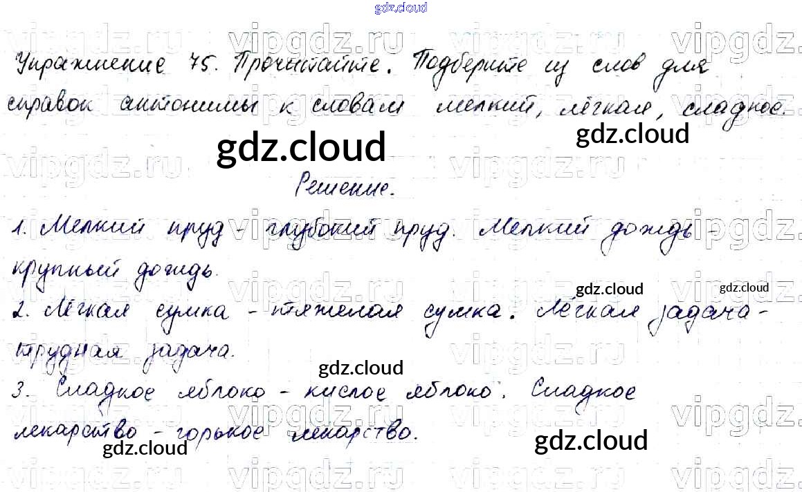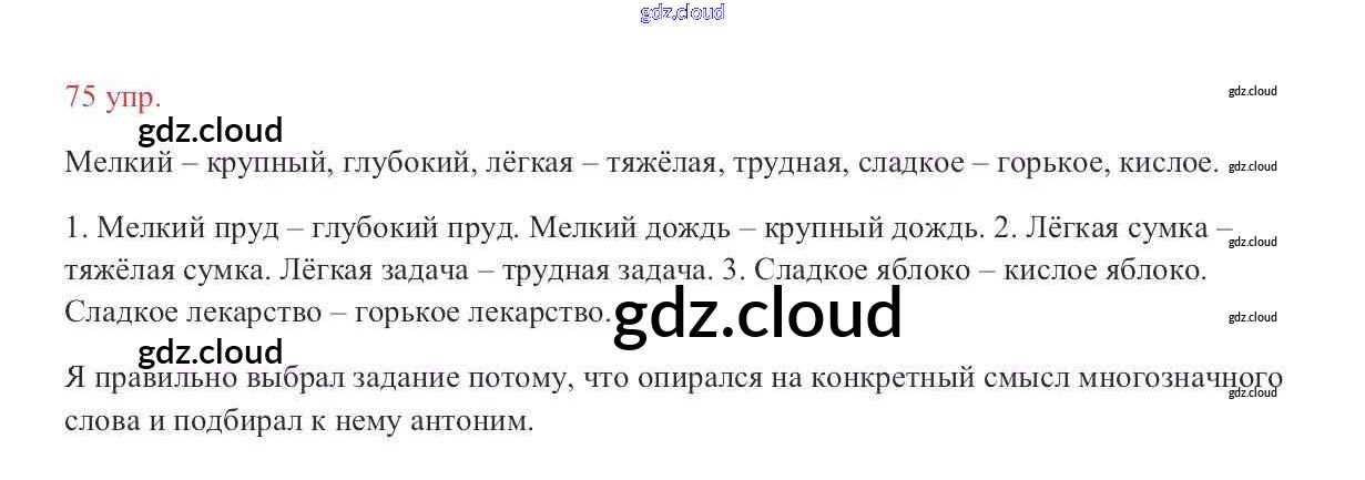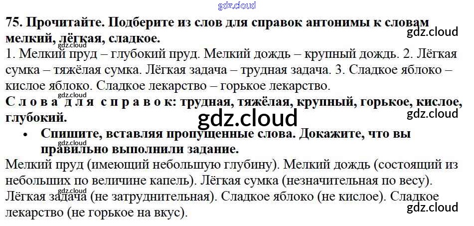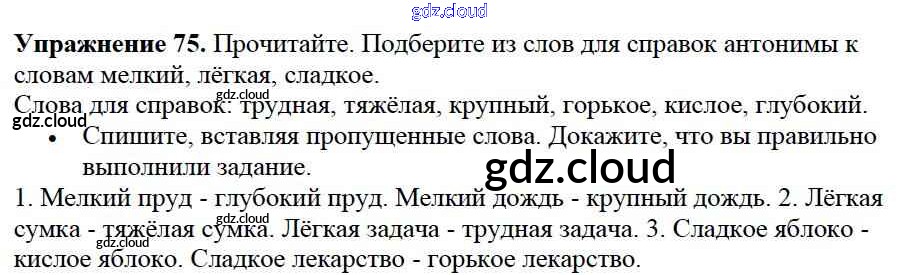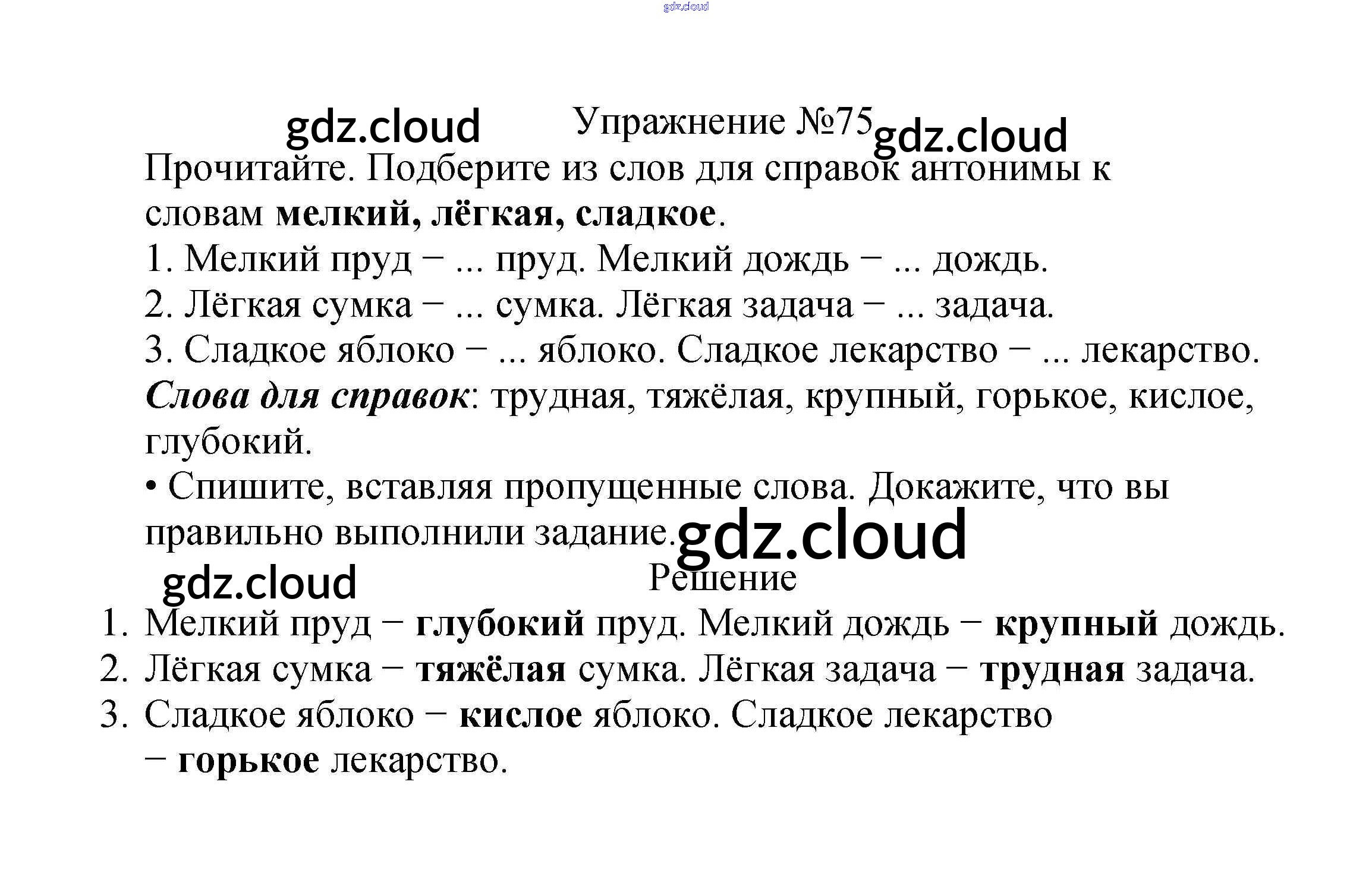 Ответ на задание упр.75 Учебник Русский язык за 2 (второй) класс Канакина, Горецкий Школа России 2013 Часть 1, 2