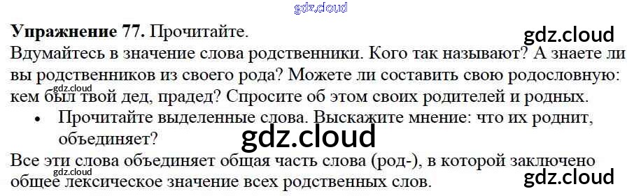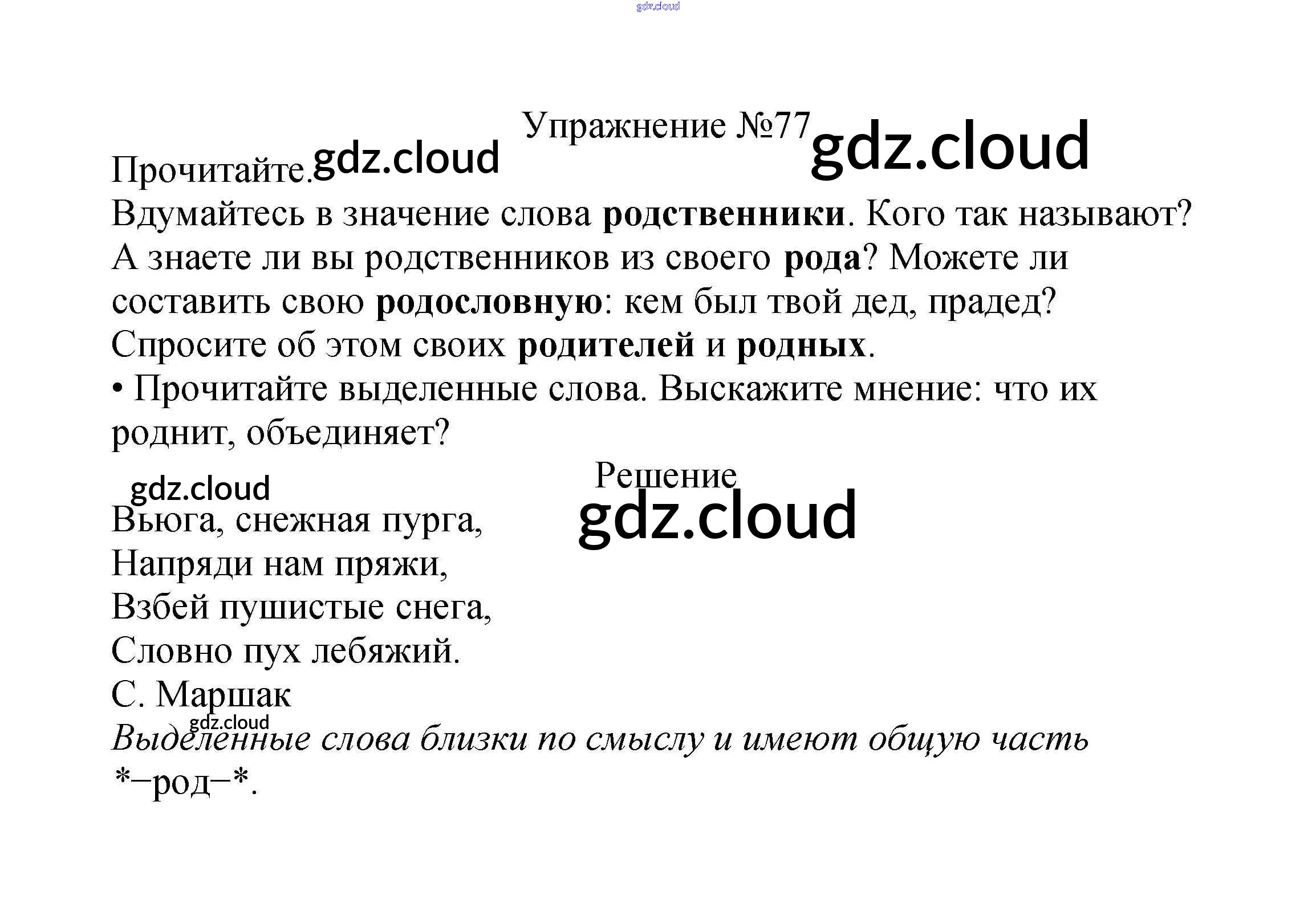 Ответ на задание упр.77 Учебник Русский язык за 2 (второй) класс Канакина, Горецкий Школа России 2013 Часть 1, 2