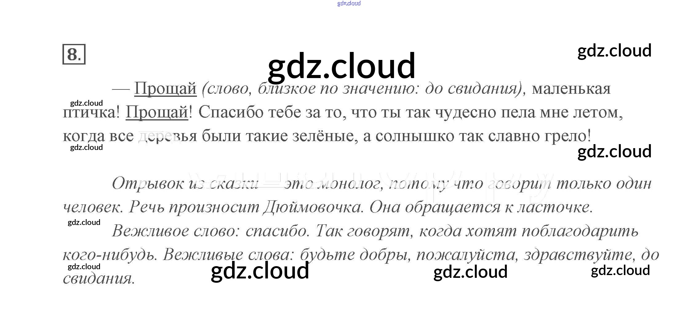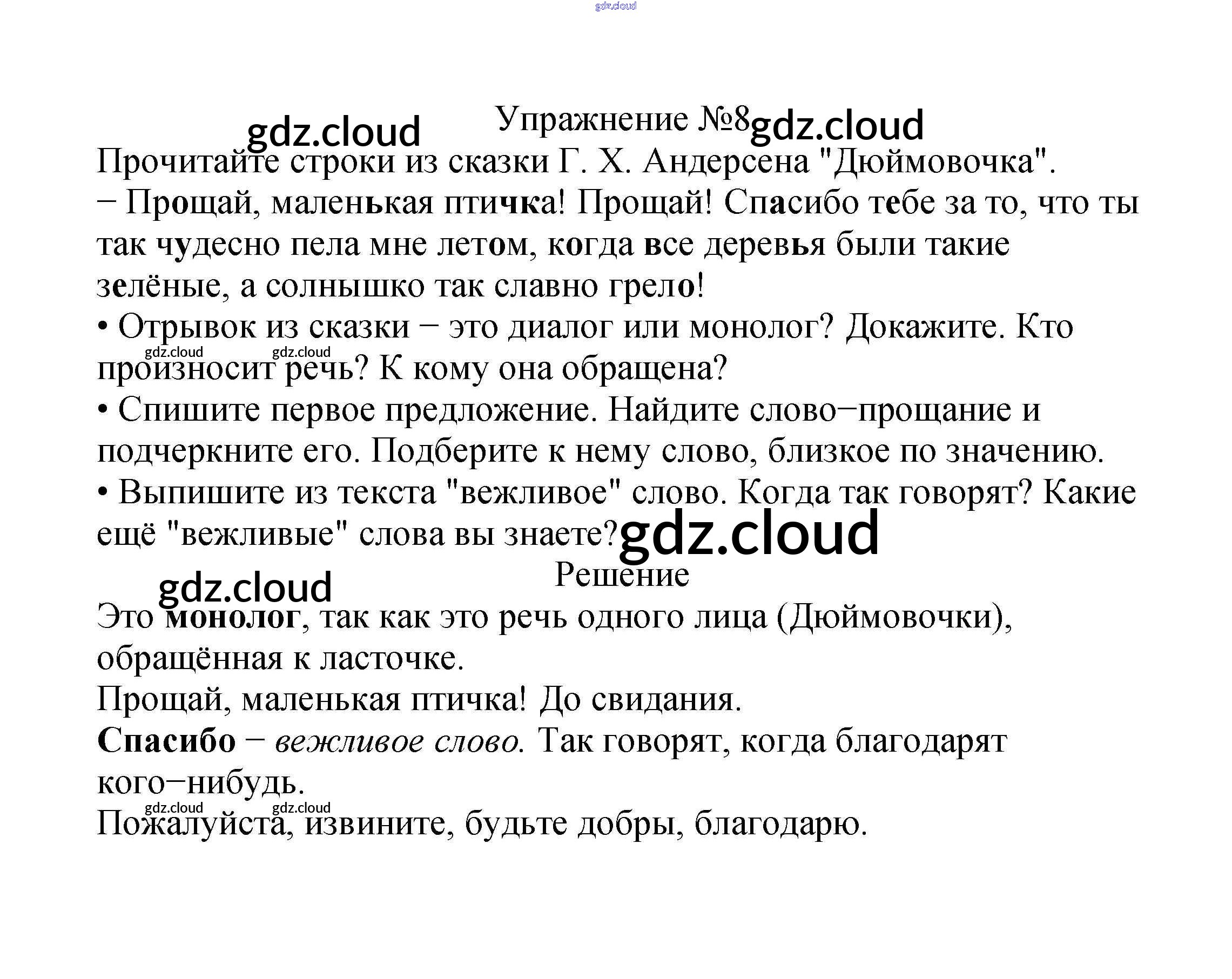 Ответ на задание упр.8 Учебник Русский язык за 2 (второй) класс Канакина, Горецкий Школа России 2013 Часть 1, 2