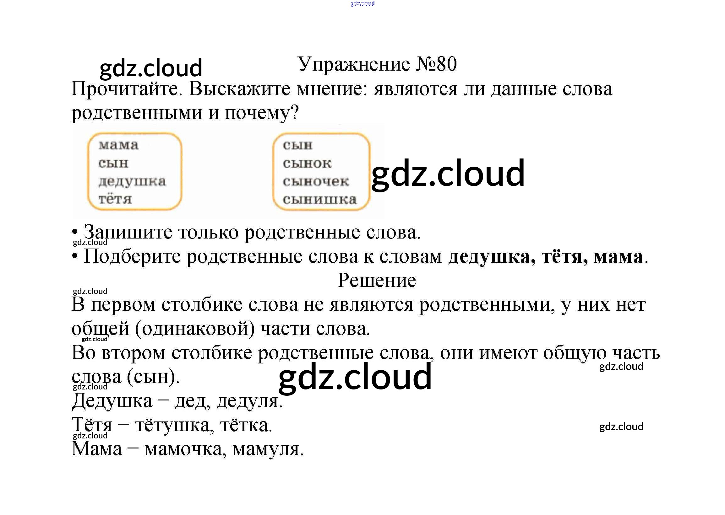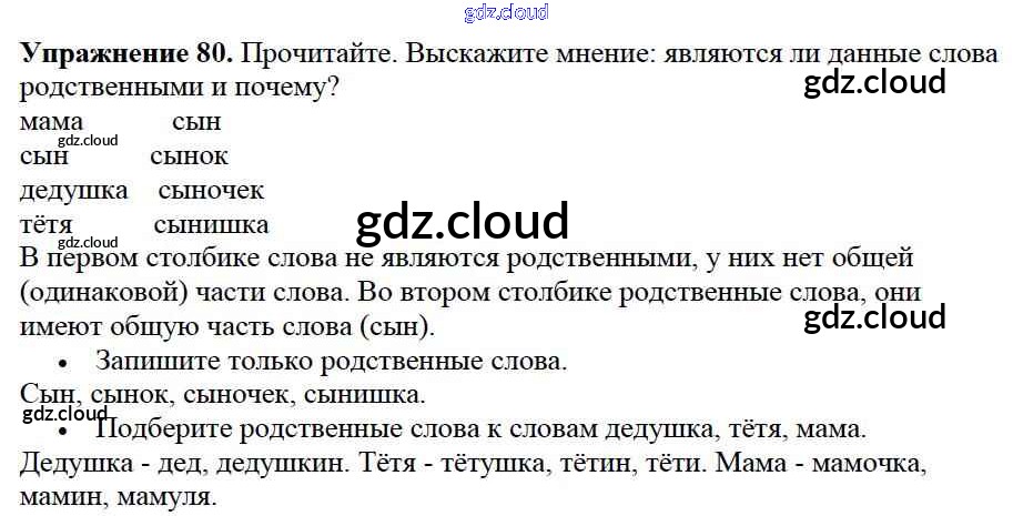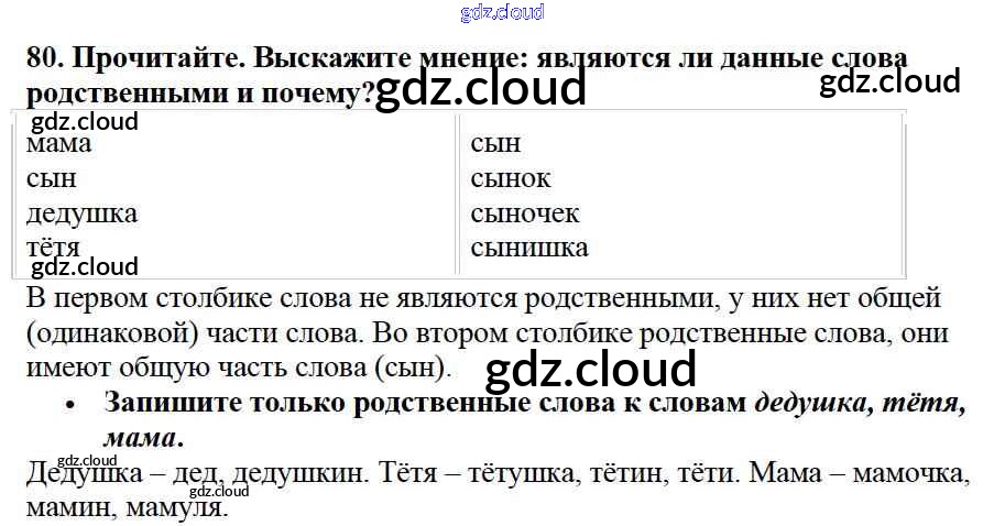Ответ на задание упр.80 Учебник Русский язык за 2 (второй) класс Канакина, Горецкий Школа России 2013 Часть 1, 2
