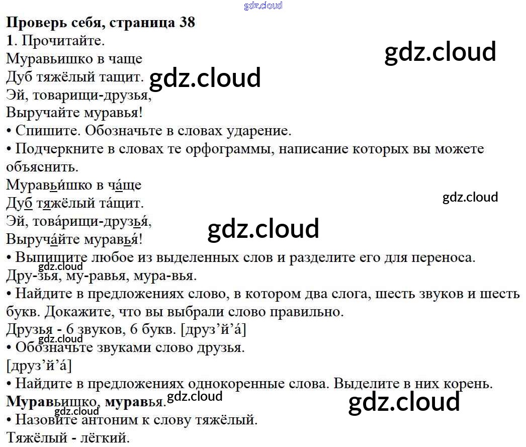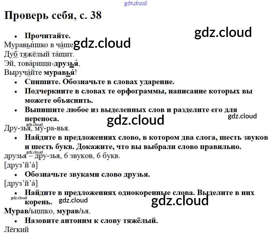 Ответ на задание стр. 38 Учебник Русский язык за 2 (второй) класс Канакина, Горецкий Школа России 2013 Часть 1, 2