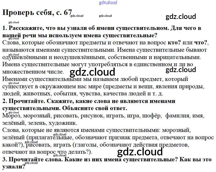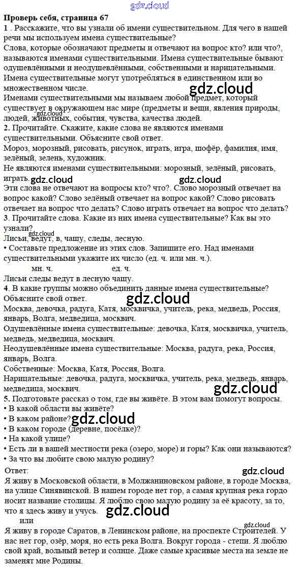 Ответ на задание стр. 67 Учебник Русский язык за 2 (второй) класс Канакина, Горецкий Школа России 2013 Часть 1, 2
