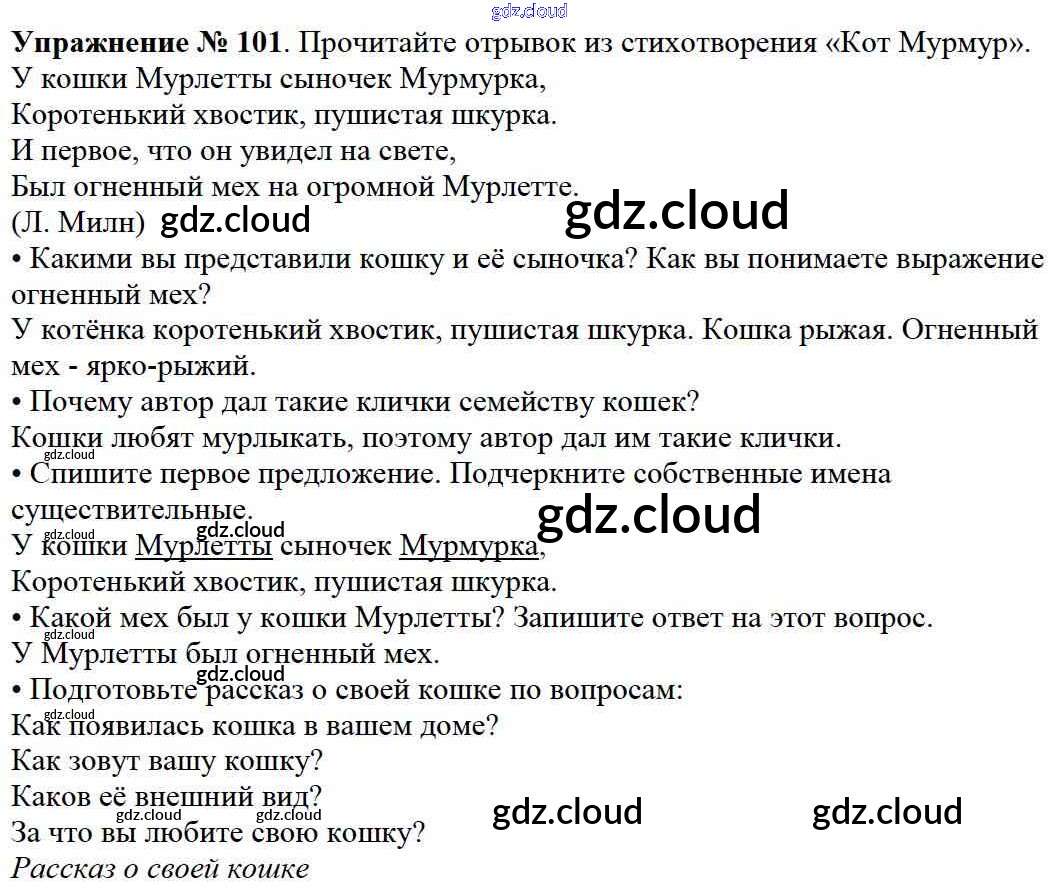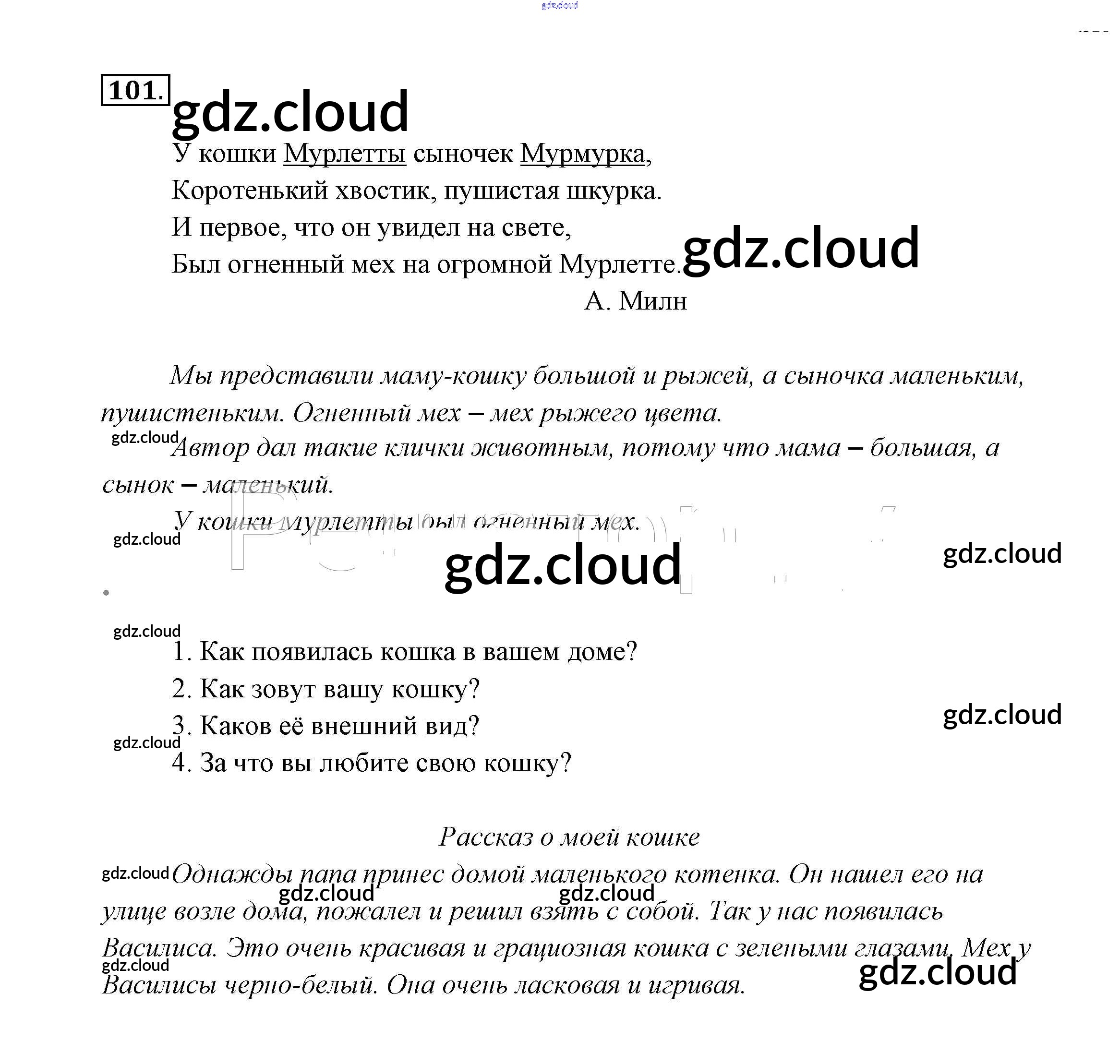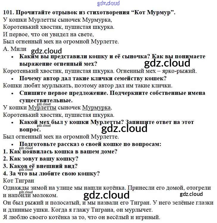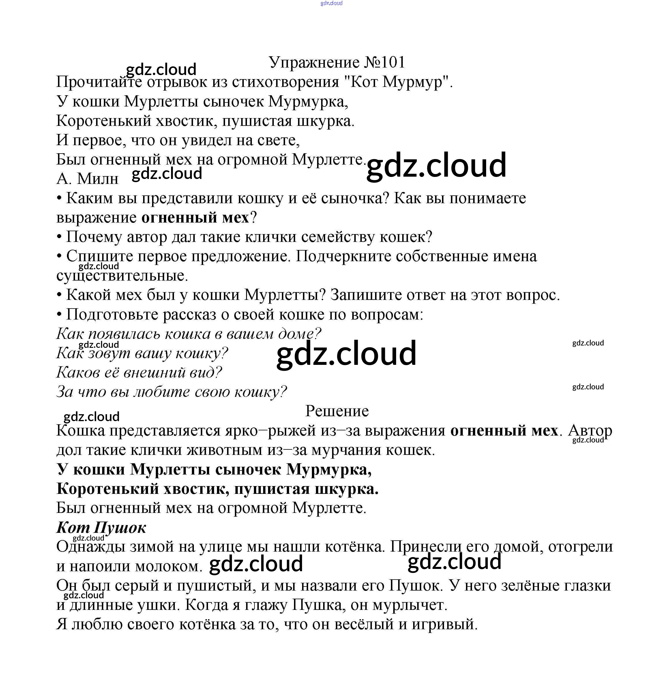 Ответ на задание упр.101 Учебник Русский язык за 2 (второй) класс Канакина, Горецкий Школа России 2013 Часть 1, 2
