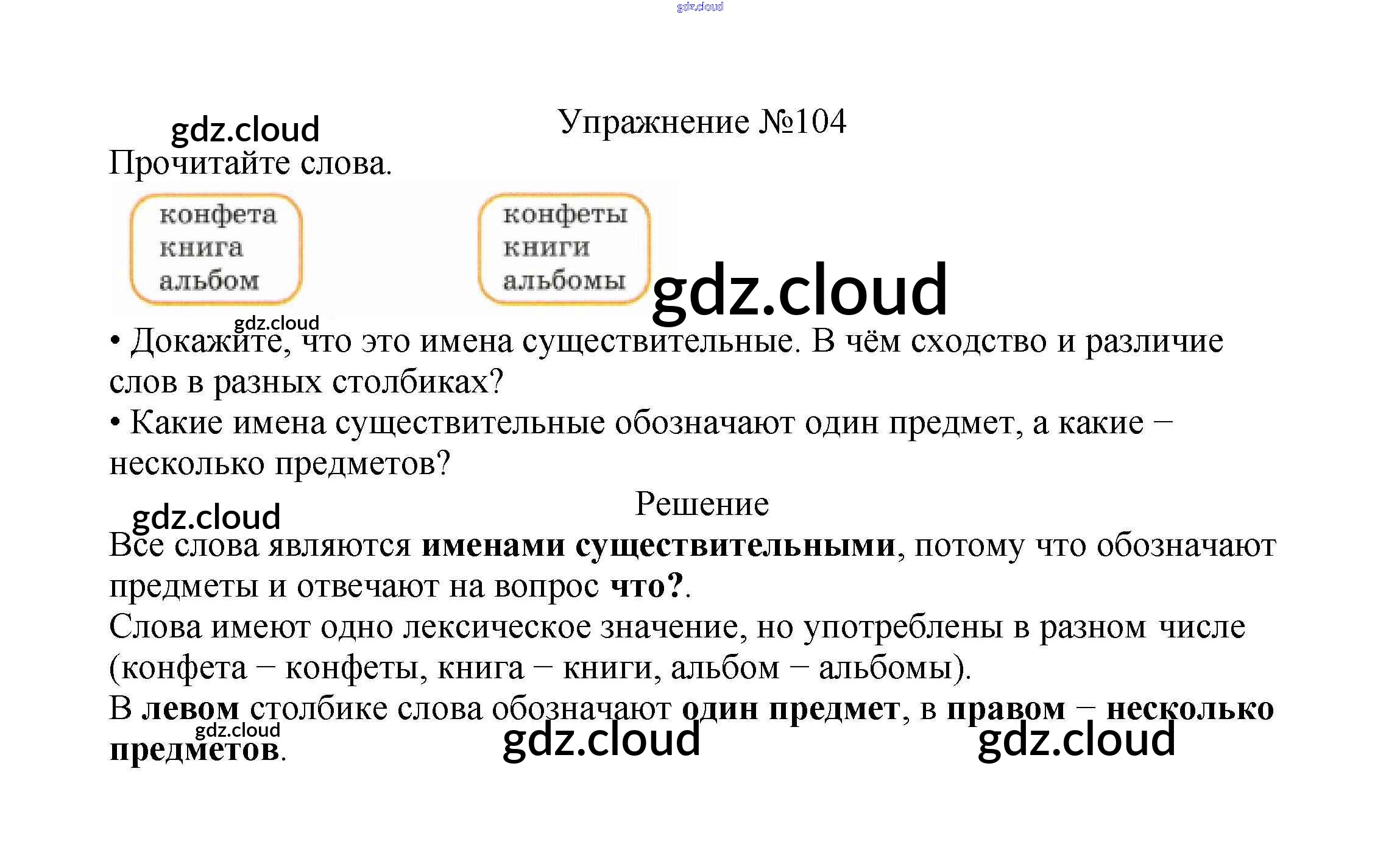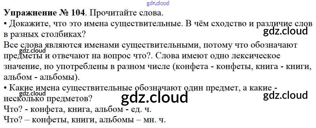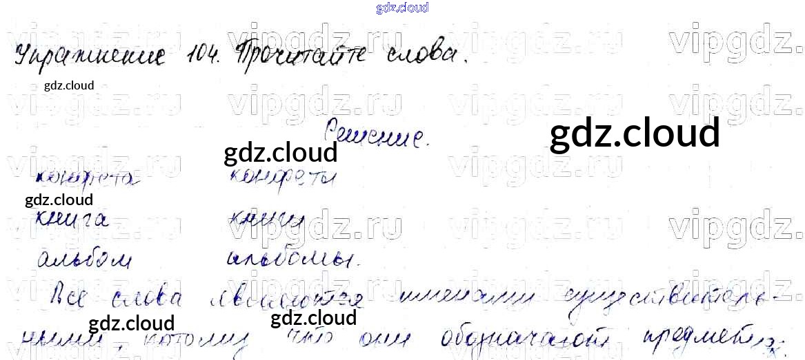 Ответ на задание упр.104 Учебник Русский язык за 2 (второй) класс Канакина, Горецкий Школа России 2013 Часть 1, 2